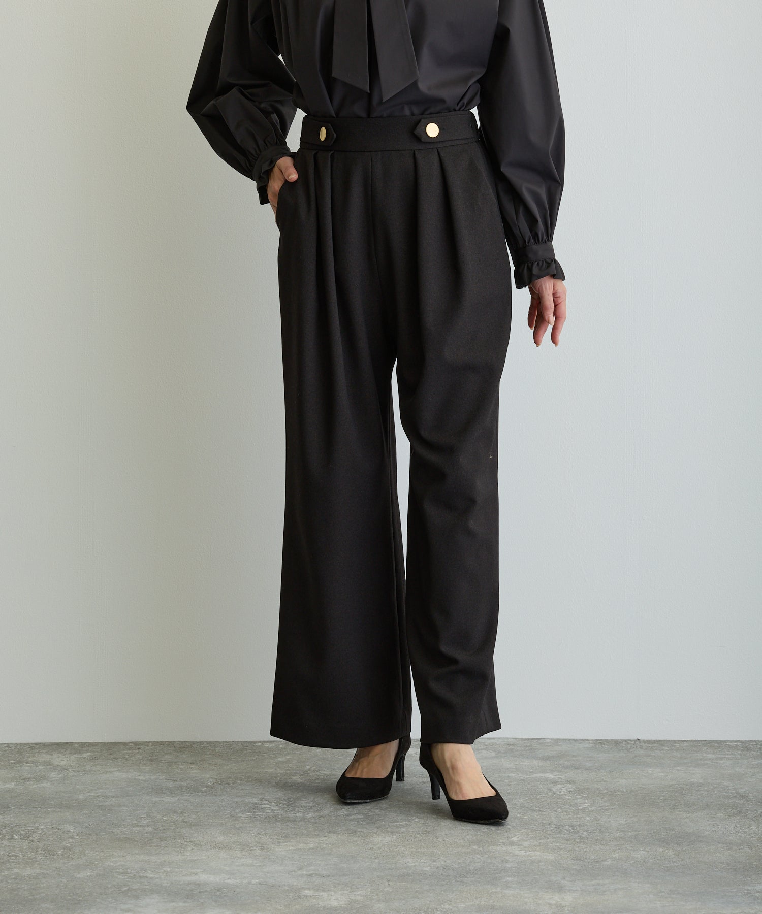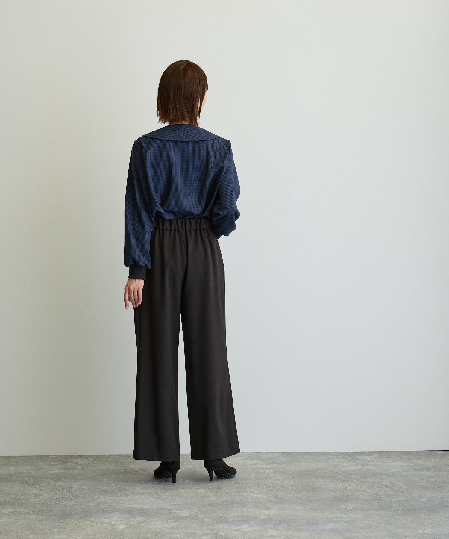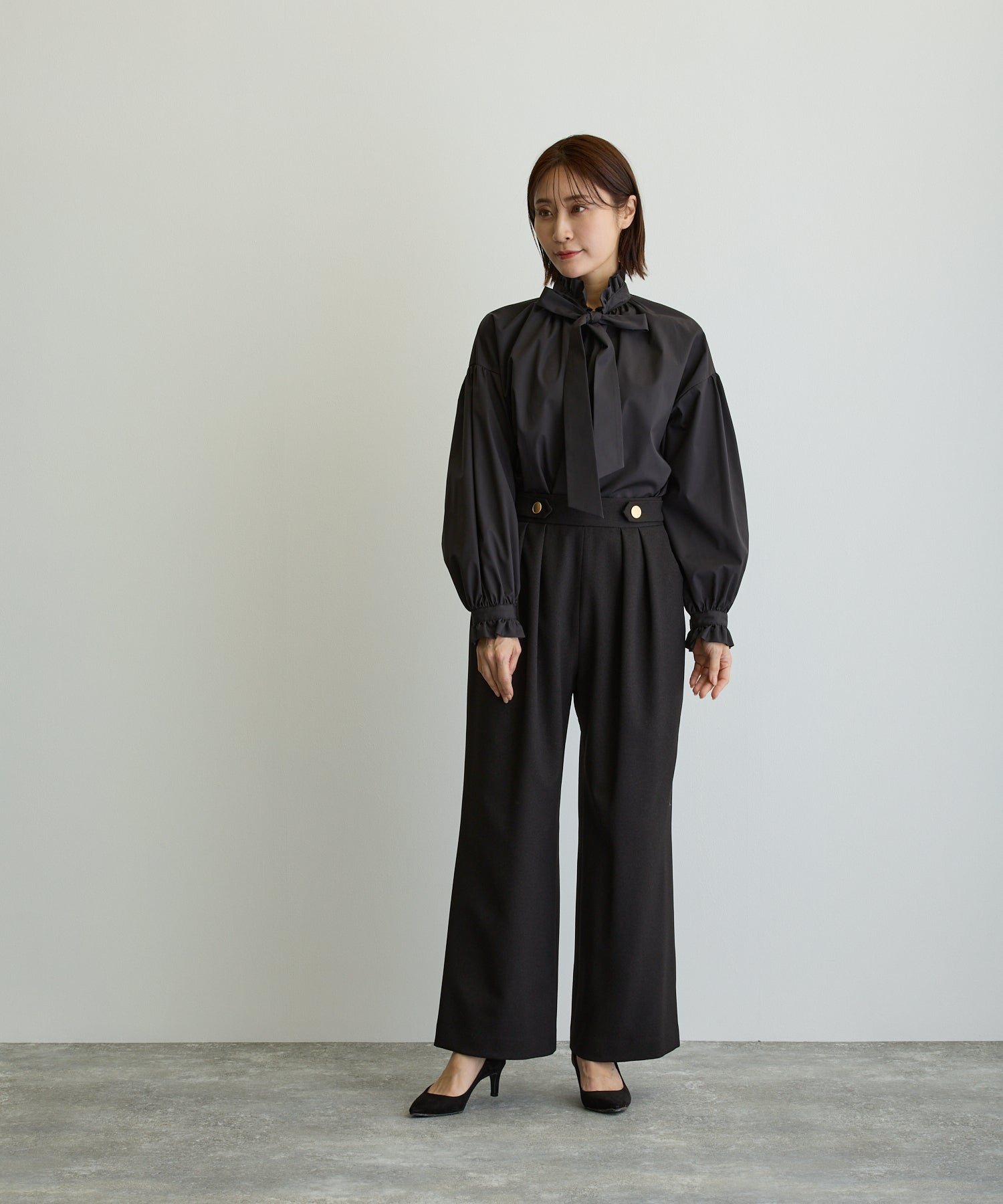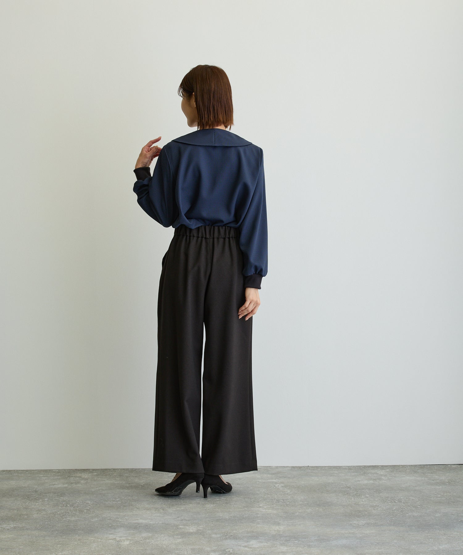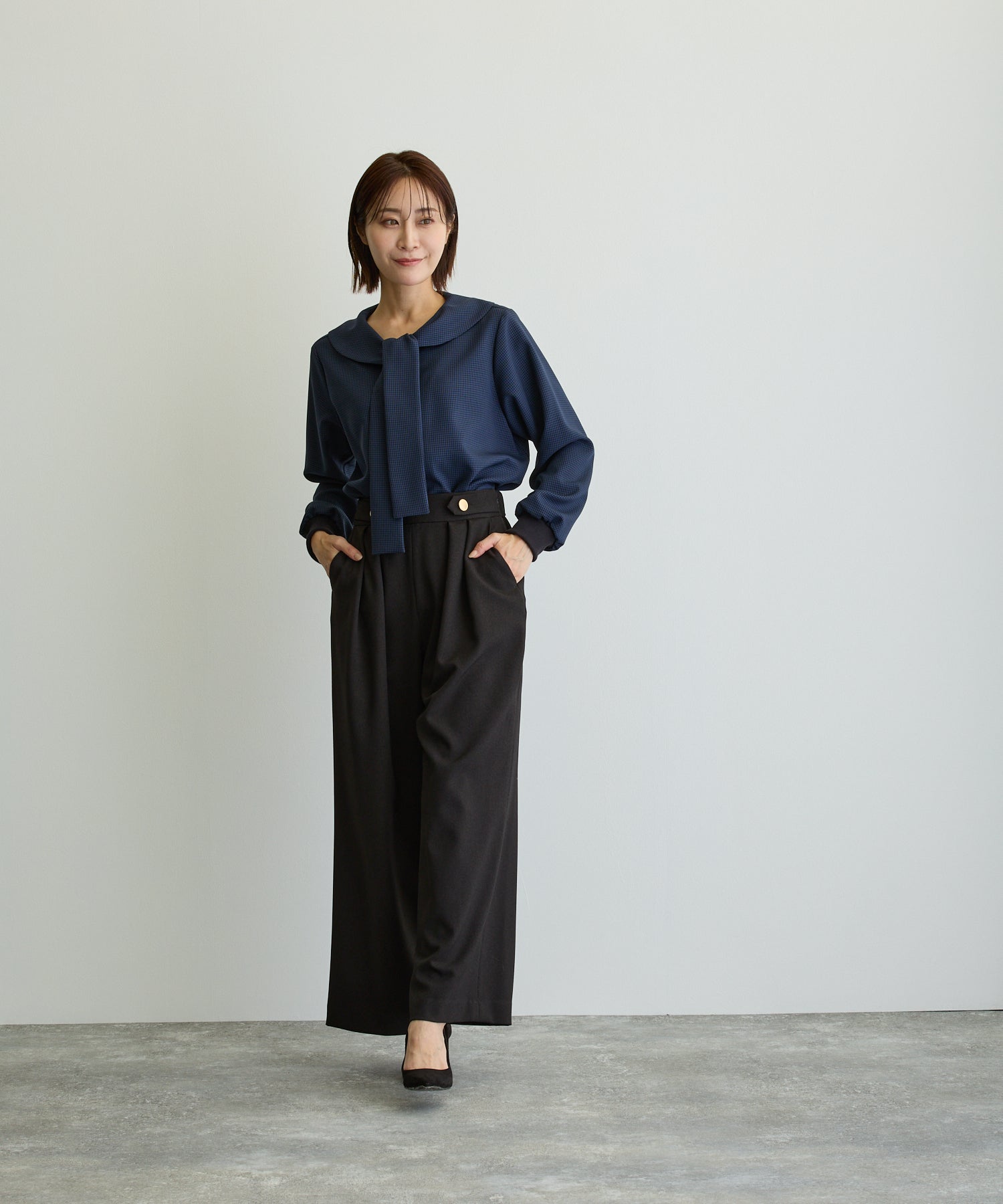 幾何柄メタル釦アシメタックブラウス/ネイビー系【日本製】