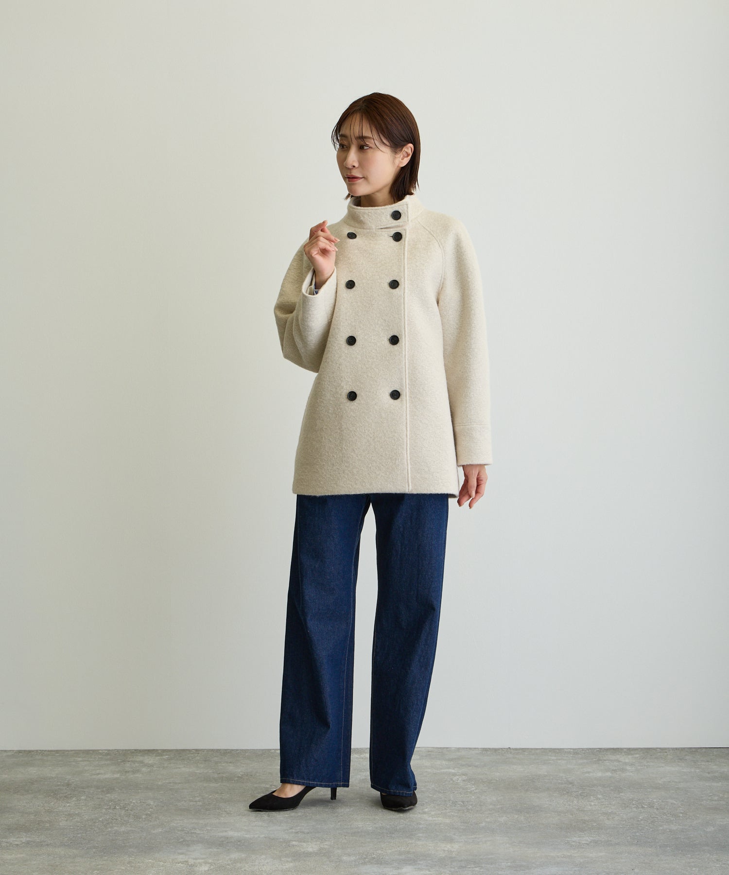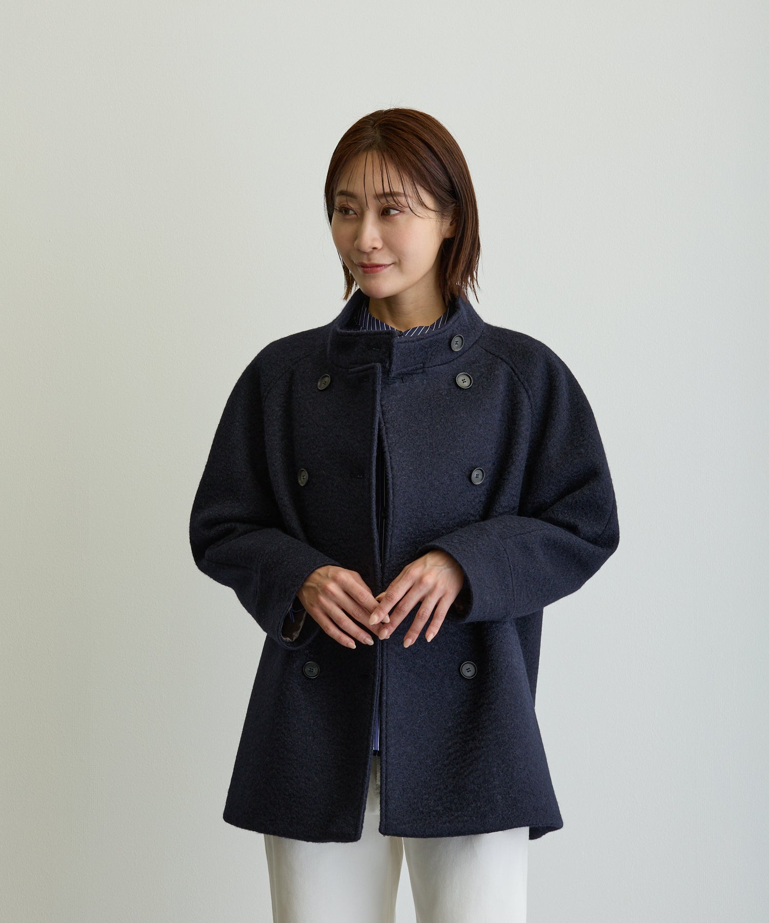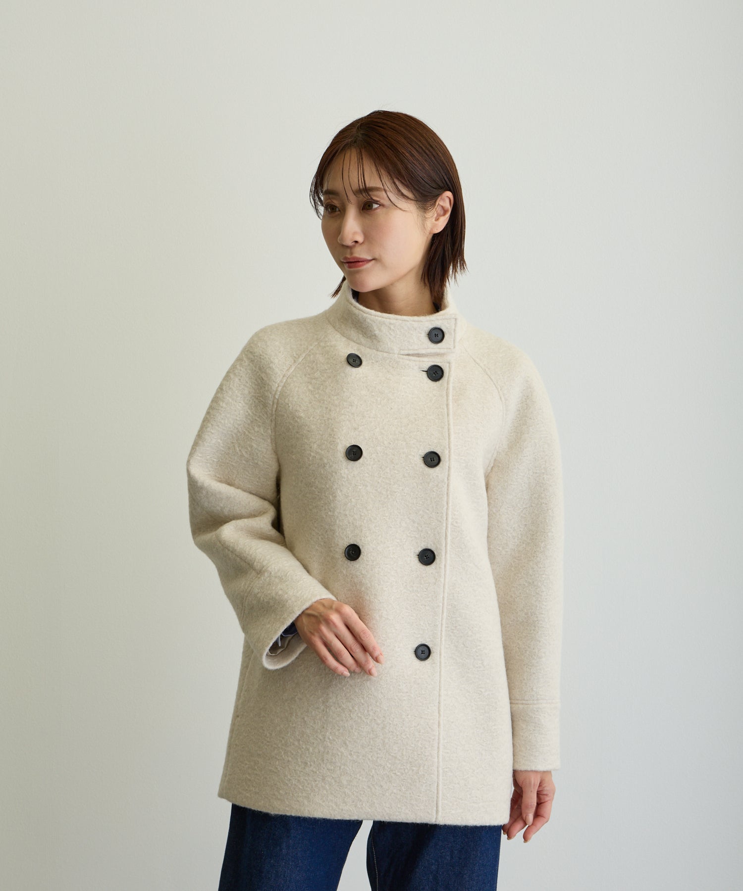 スタンドカラーハーフPコート/エクリュ【日本製】