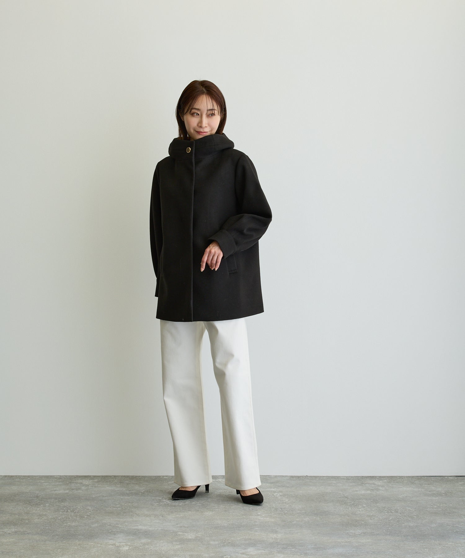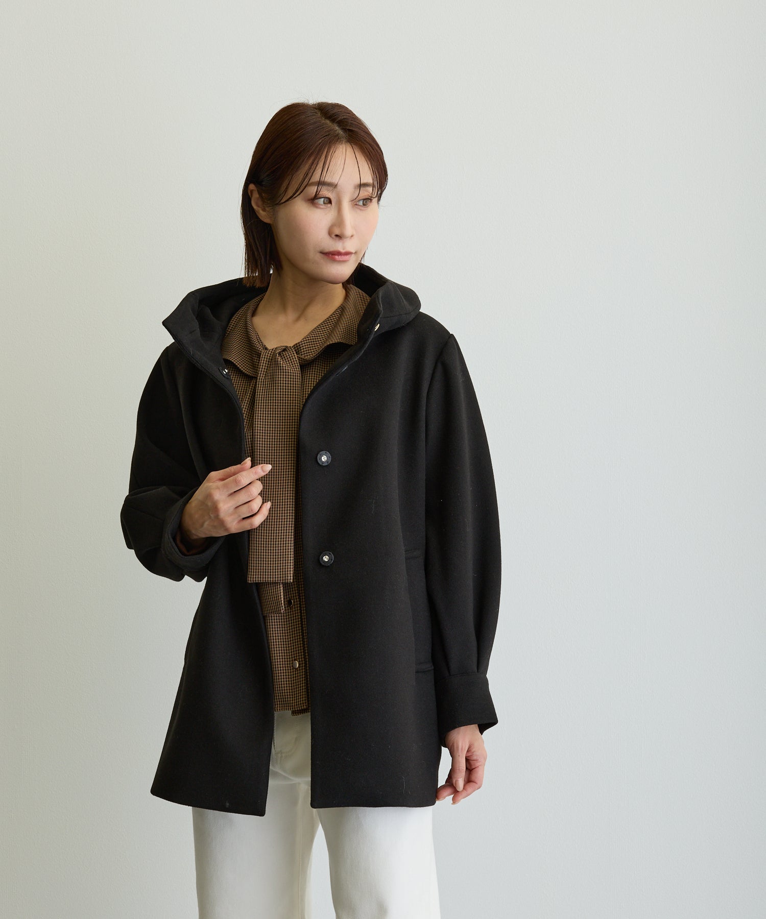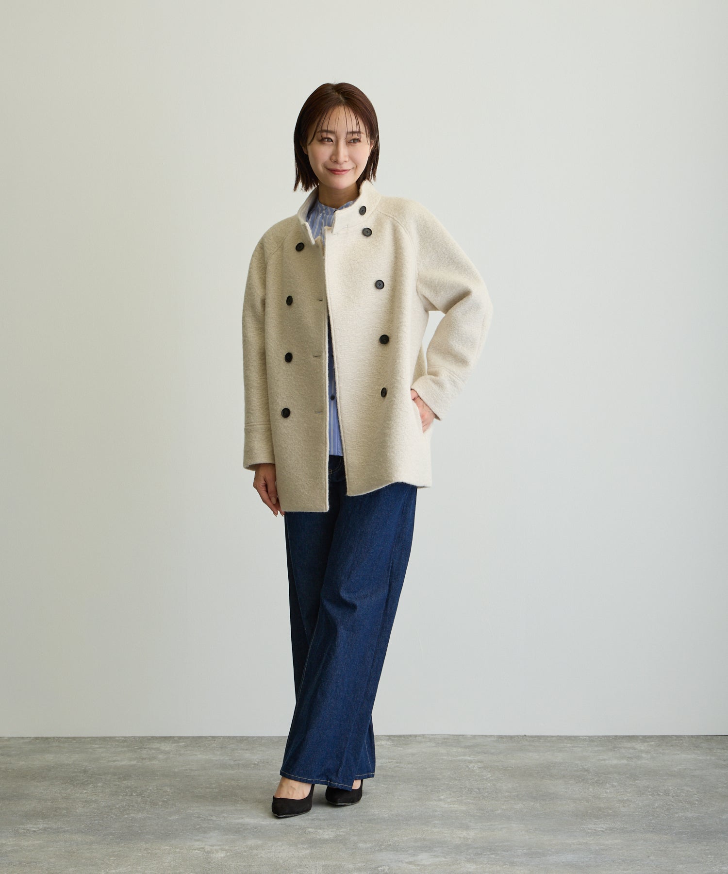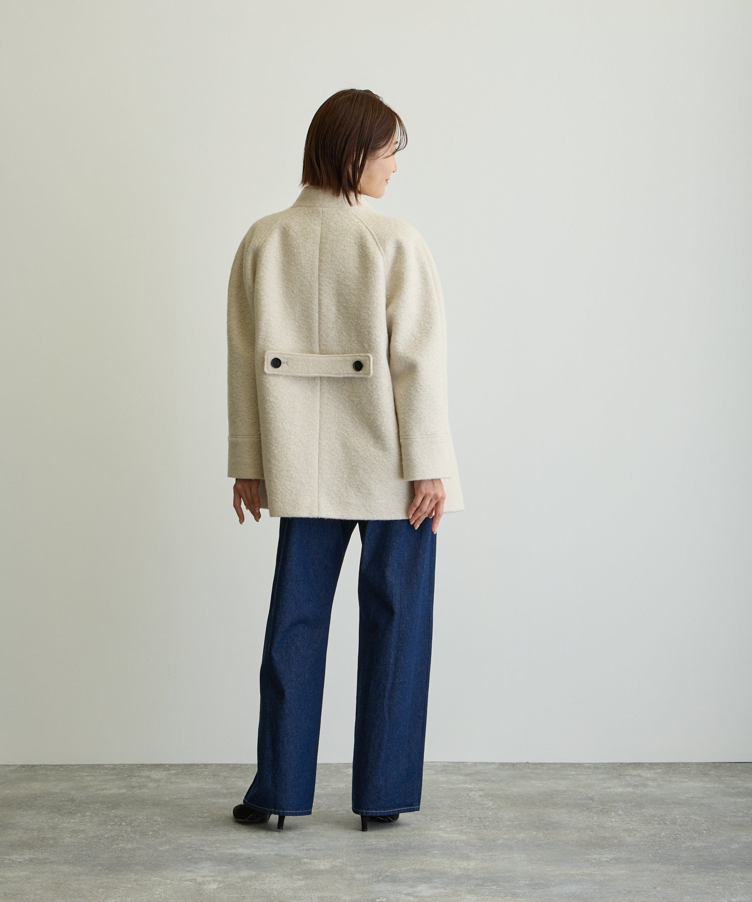 スタンドカラーハーフPコート/エクリュ【日本製】