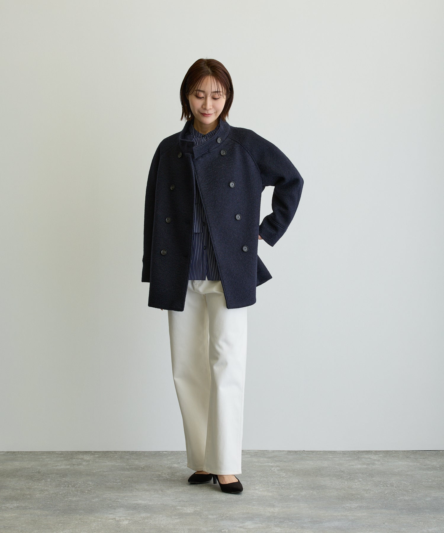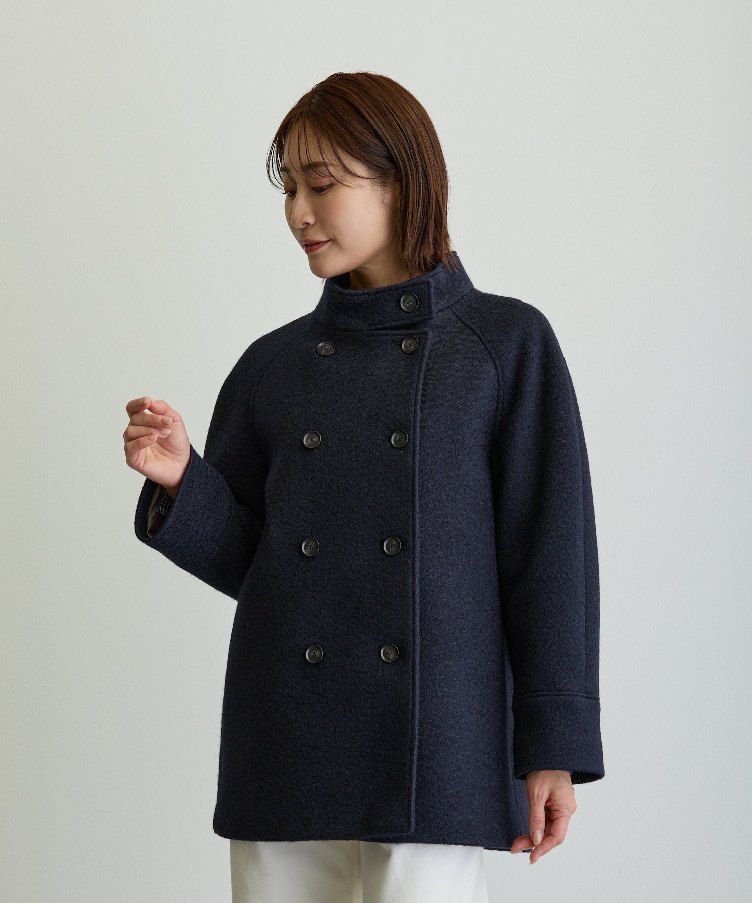 スタンドカラーハーフPコート/ネイビー【日本製】