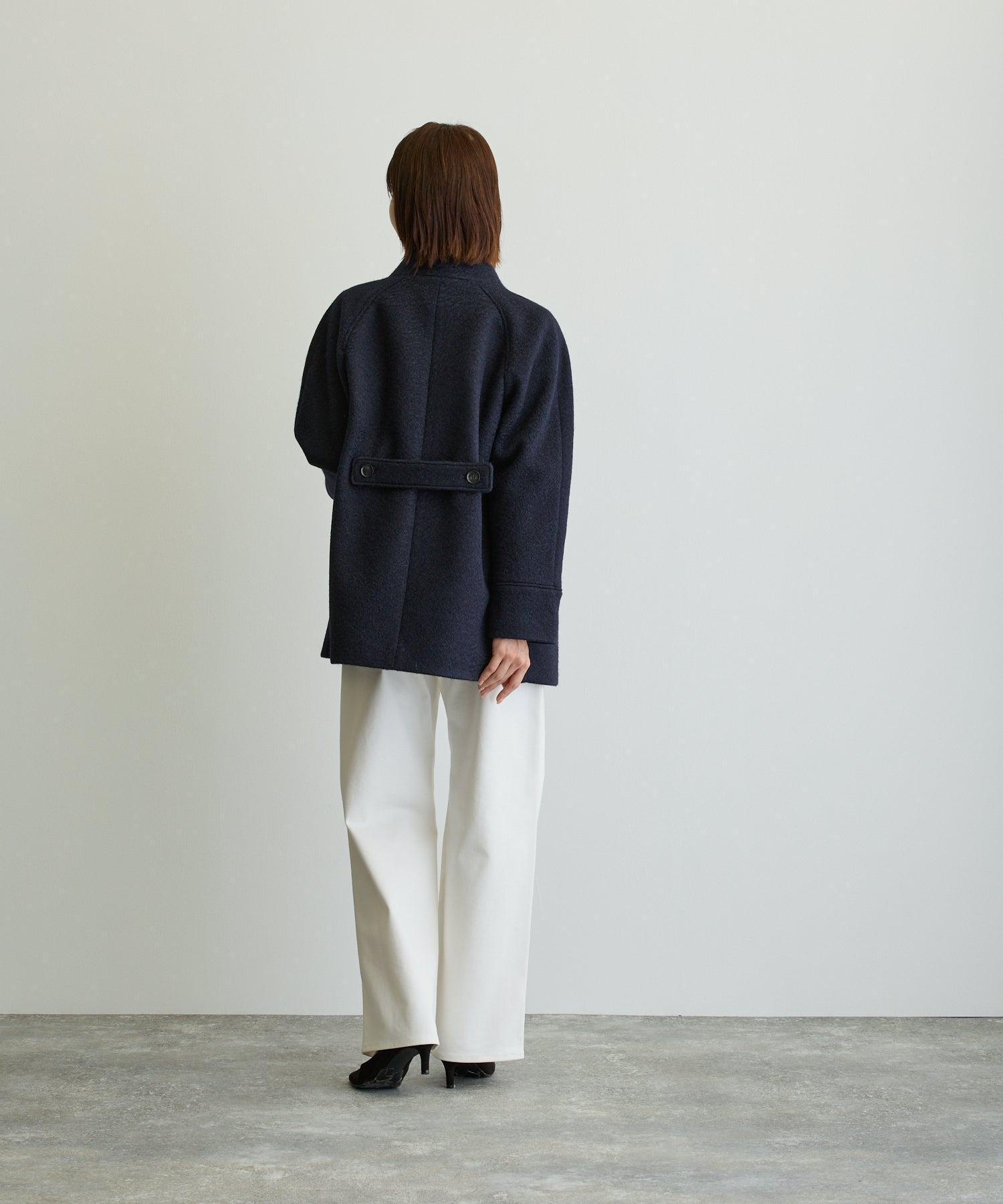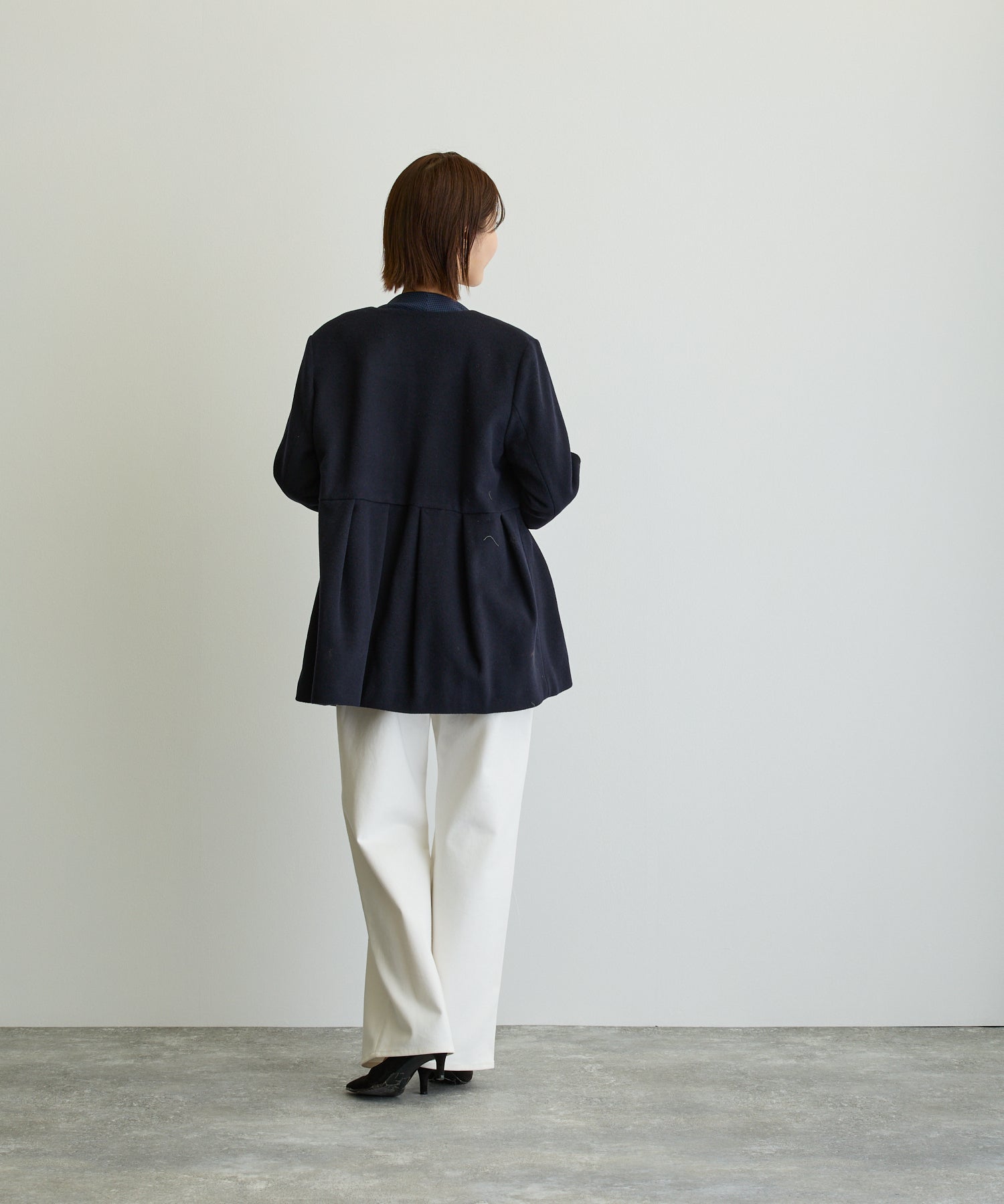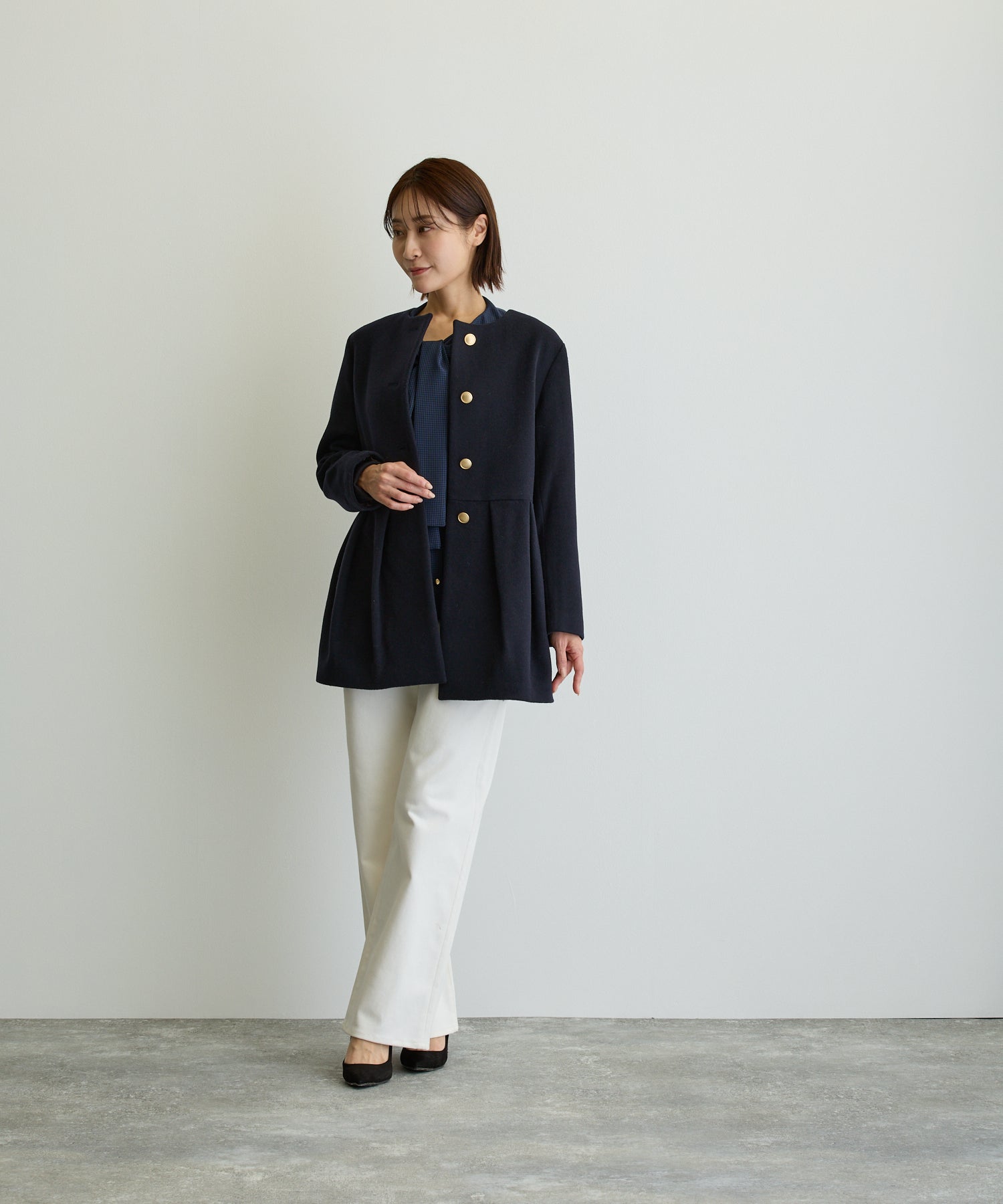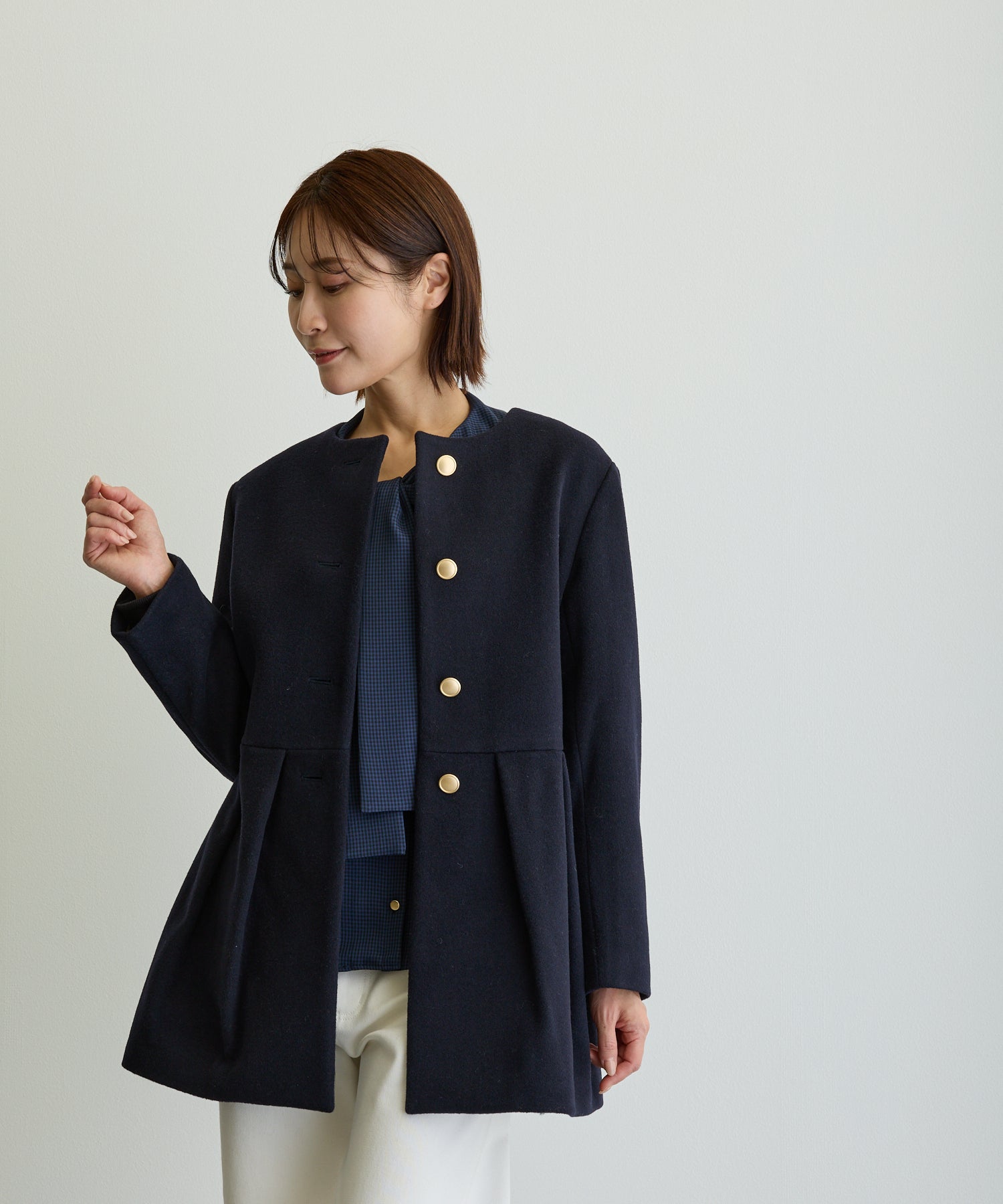 ペプラムノーカラーコート/ネイビー【日本製】
