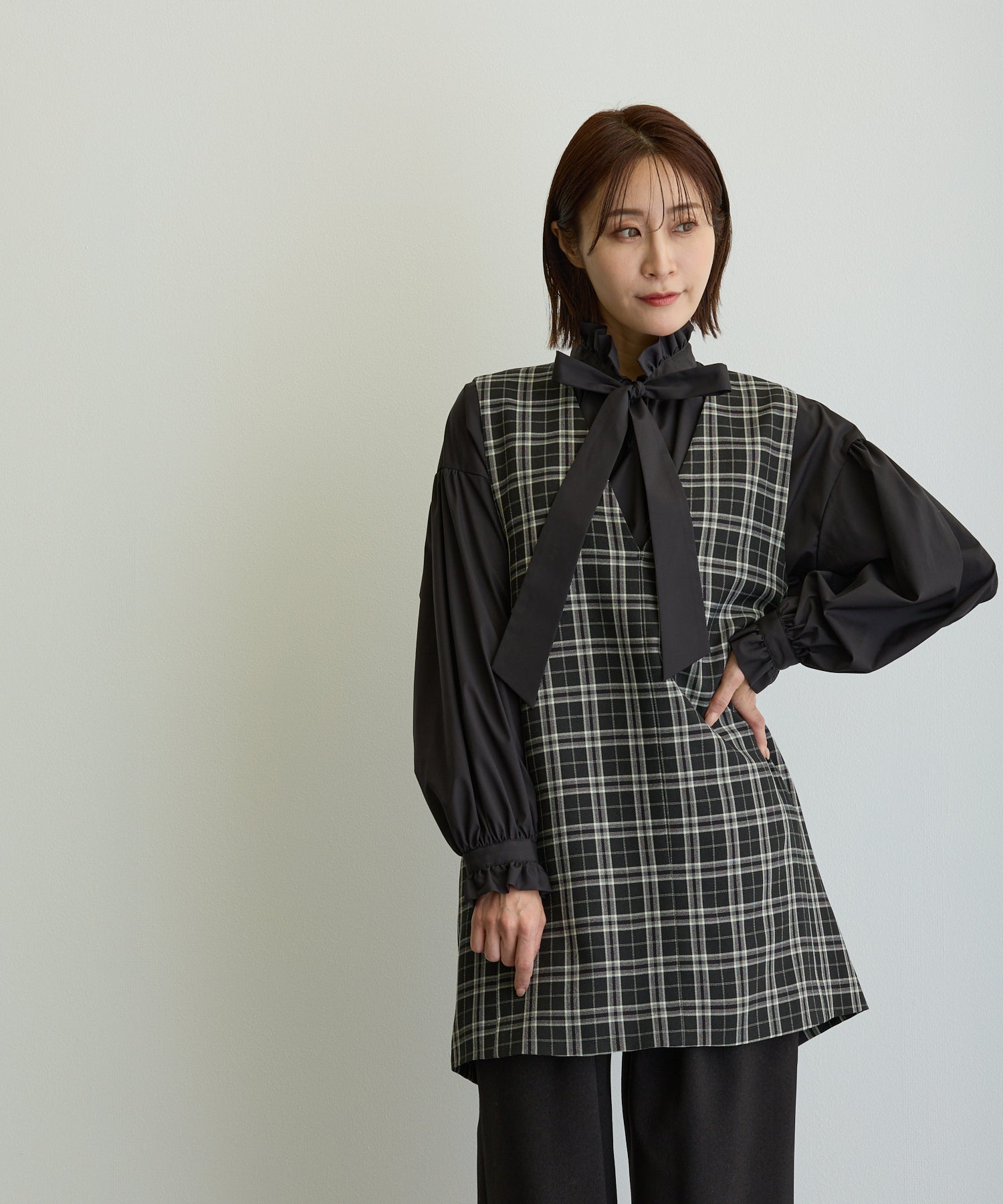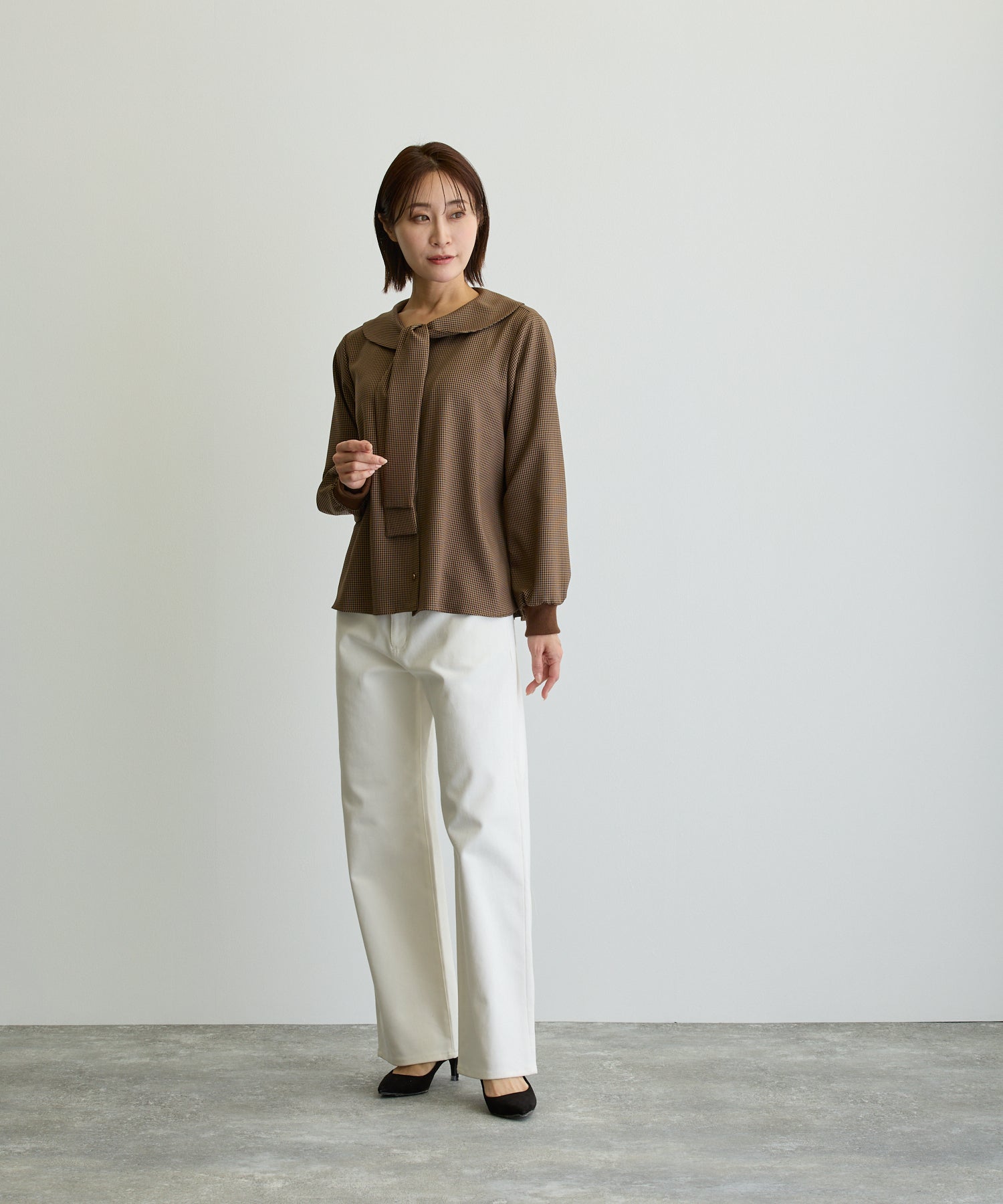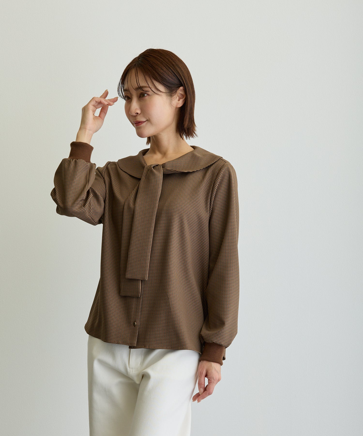 ガンクラブチェックボウタイブラウス/ブラウン【日本製】