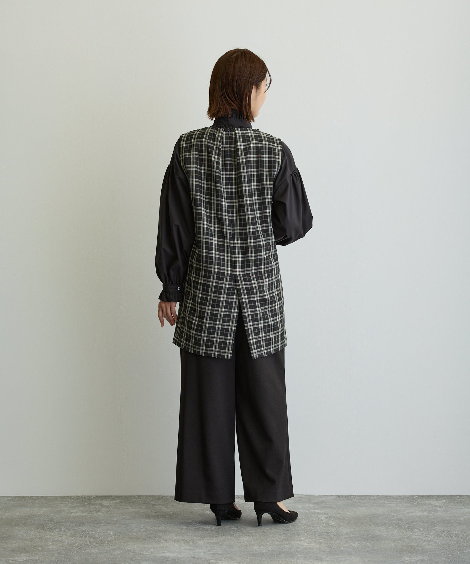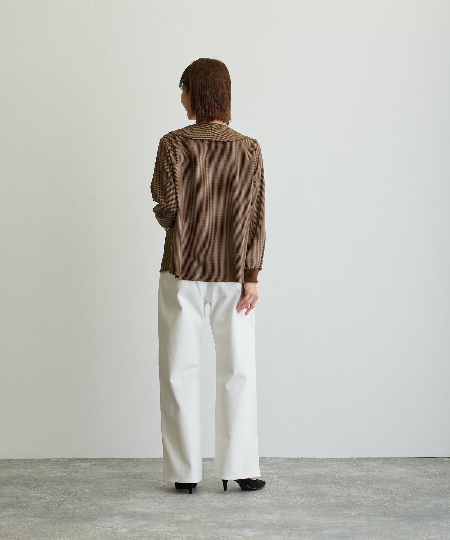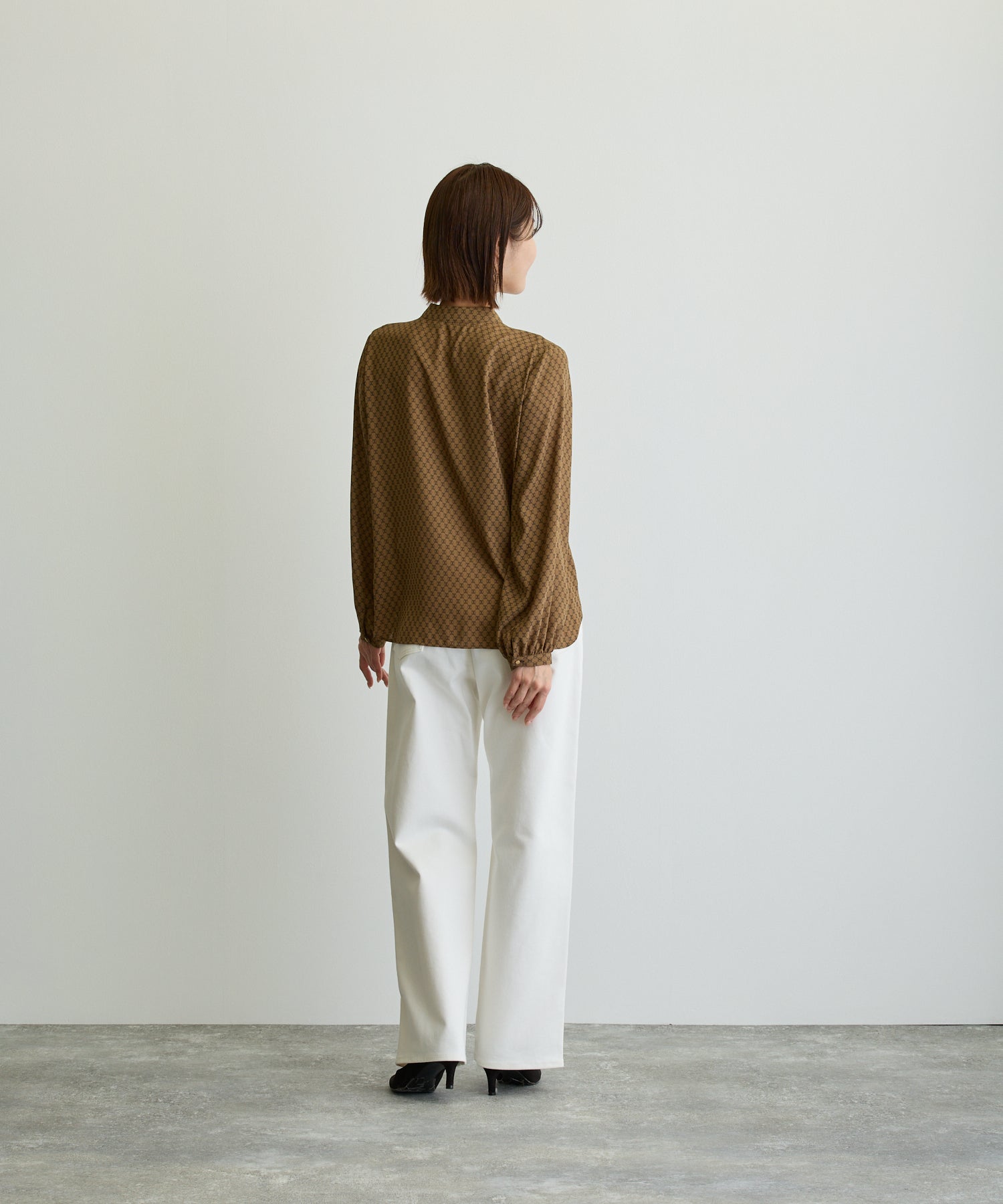 千鳥ツイード風プリントフリルブラウス【日本製】