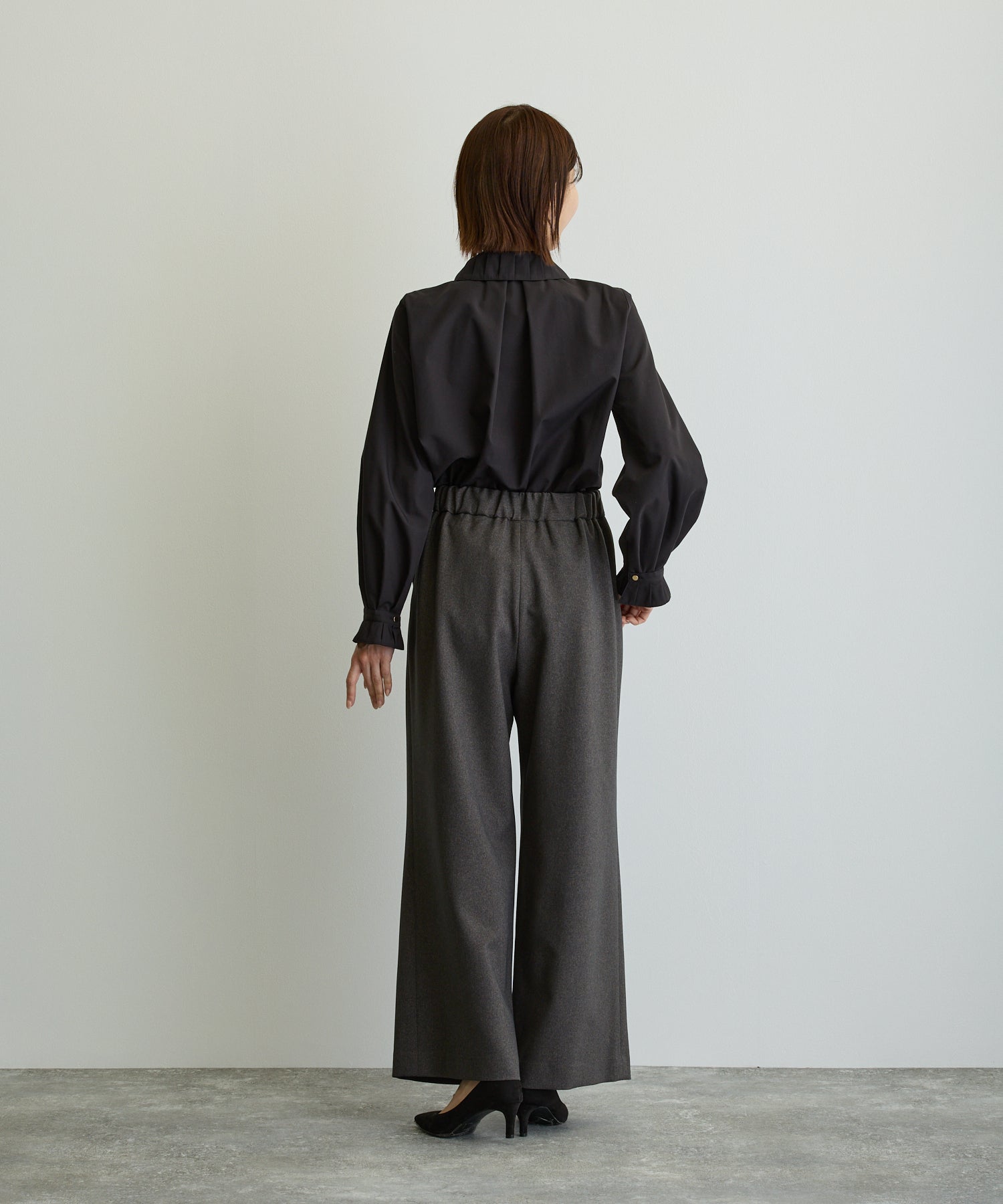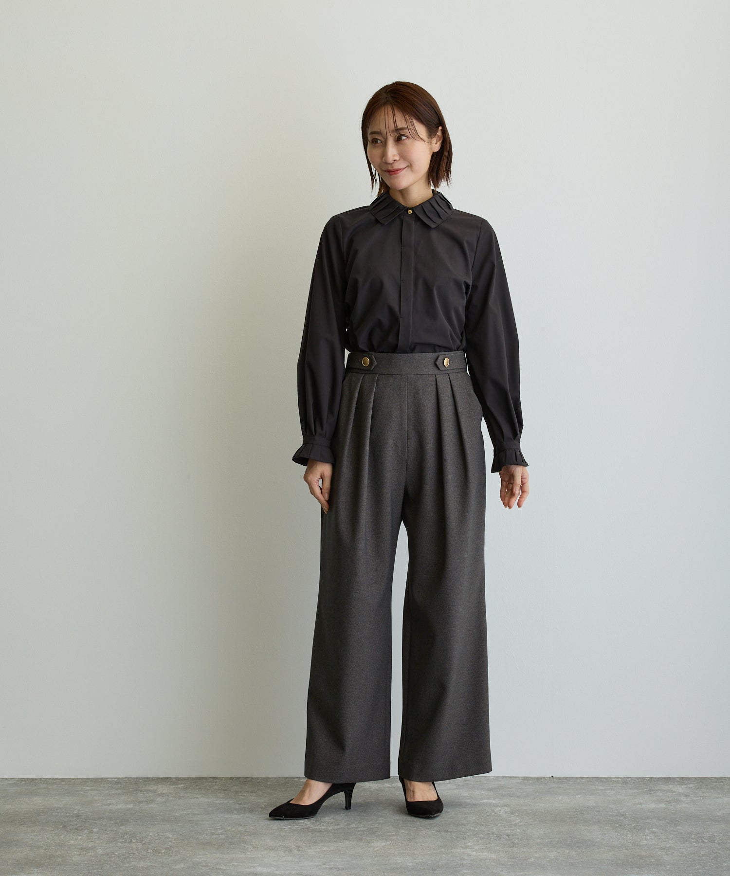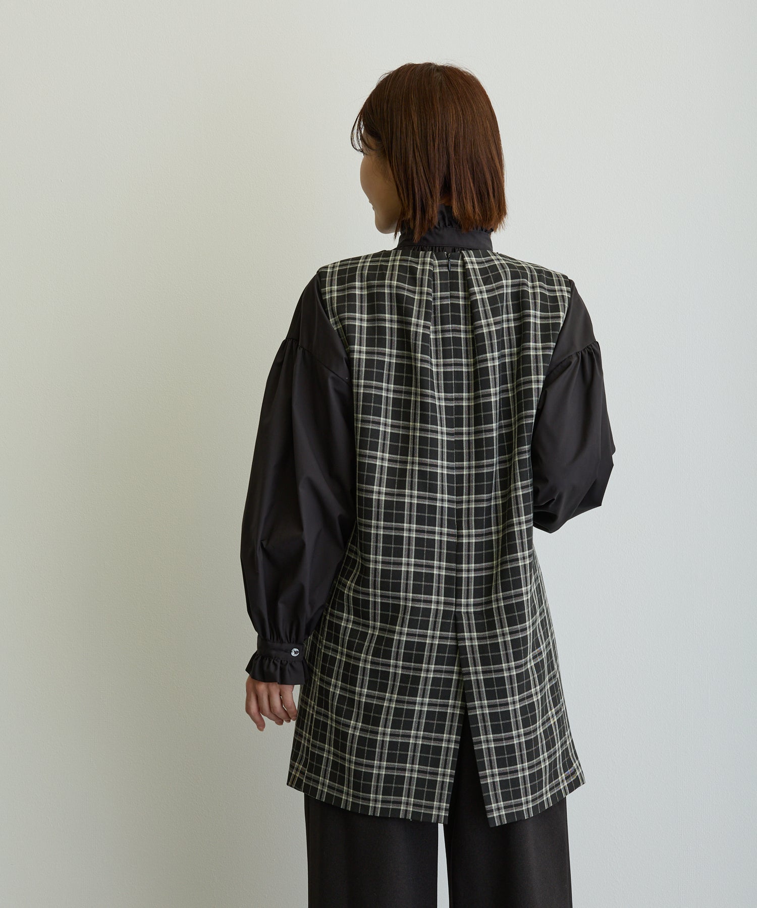 千鳥ツイード風プリントフリルブラウス【日本製】