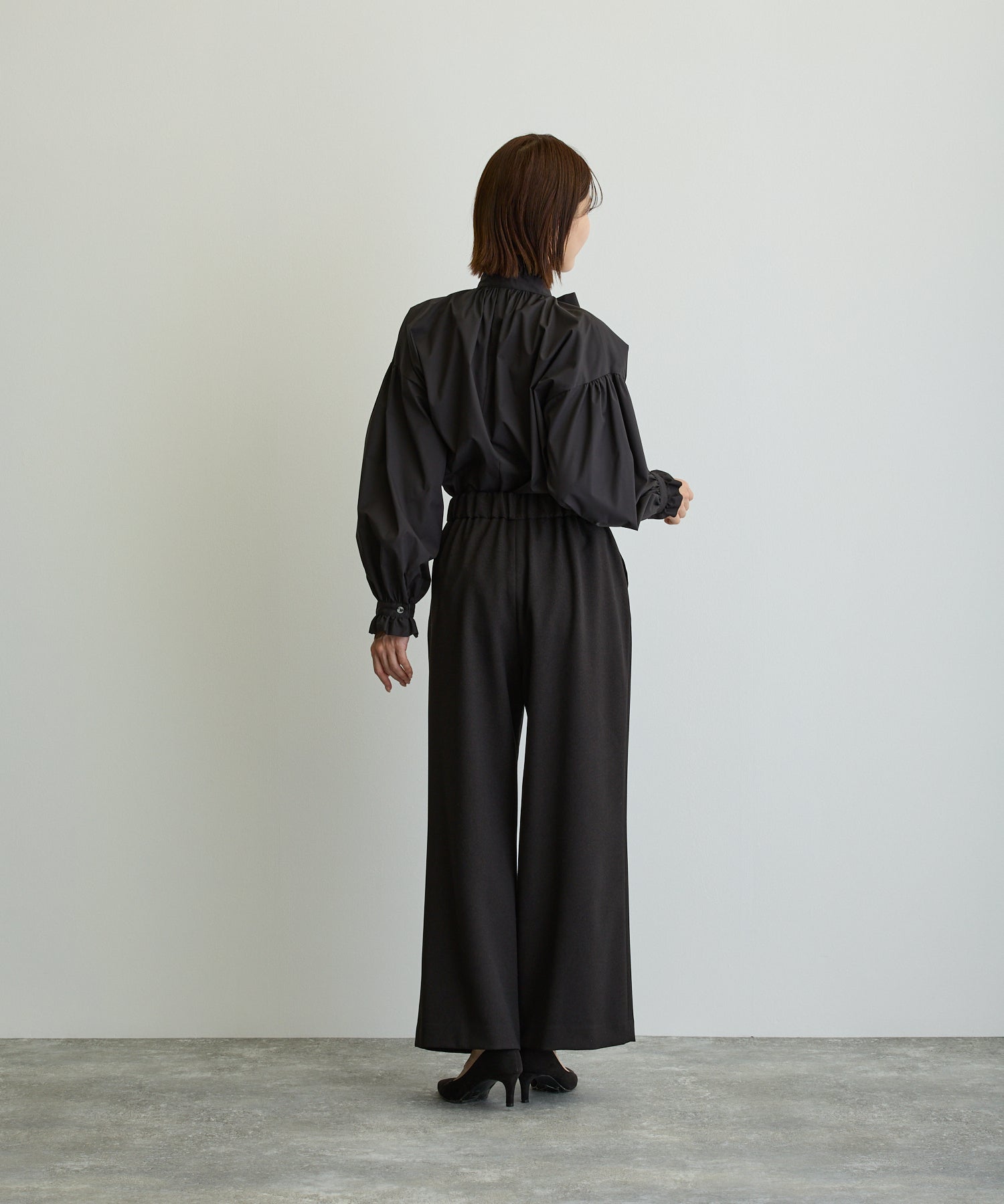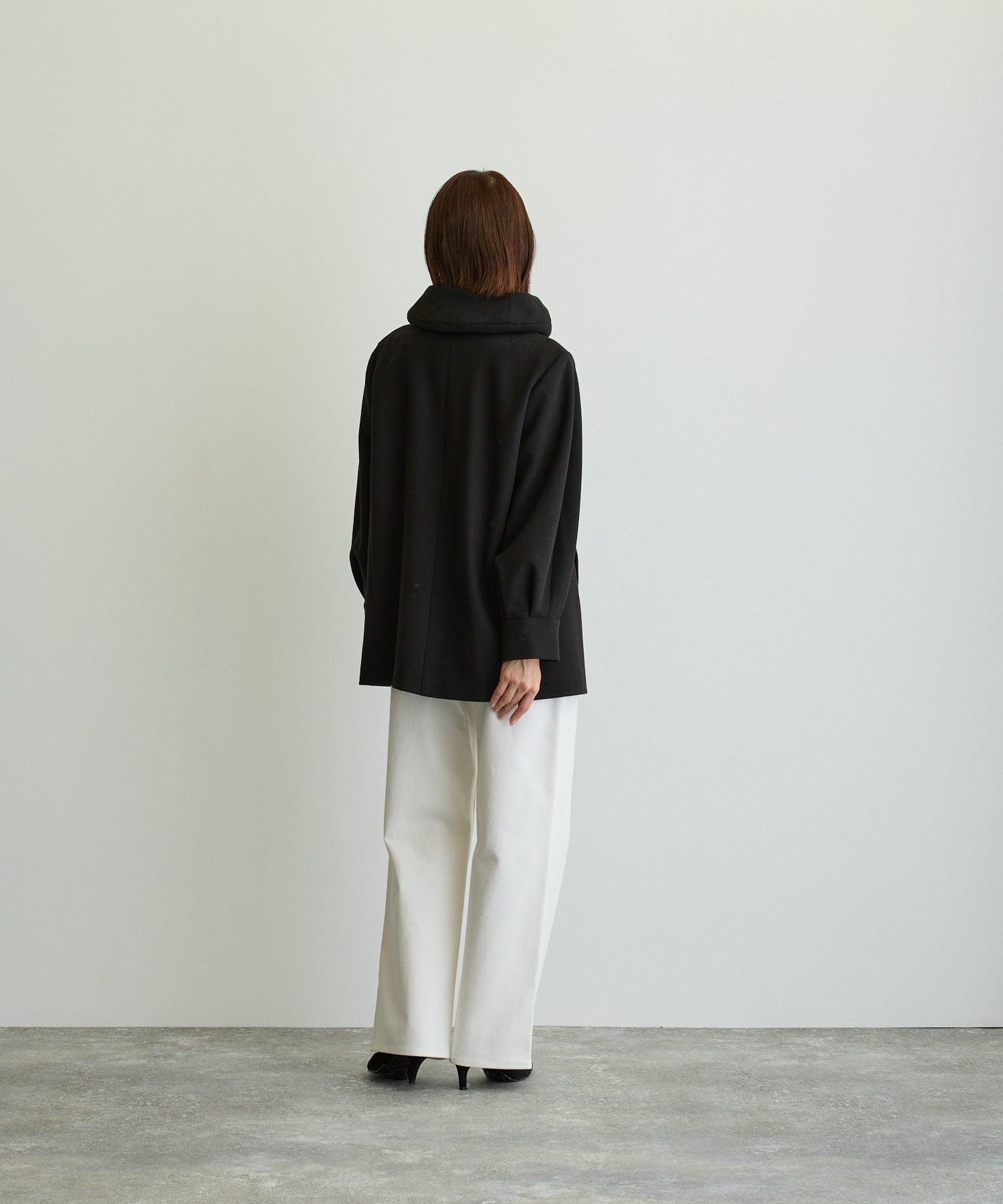 デザイン立体スタンドカラーミドルコート/ブラック【日本製】