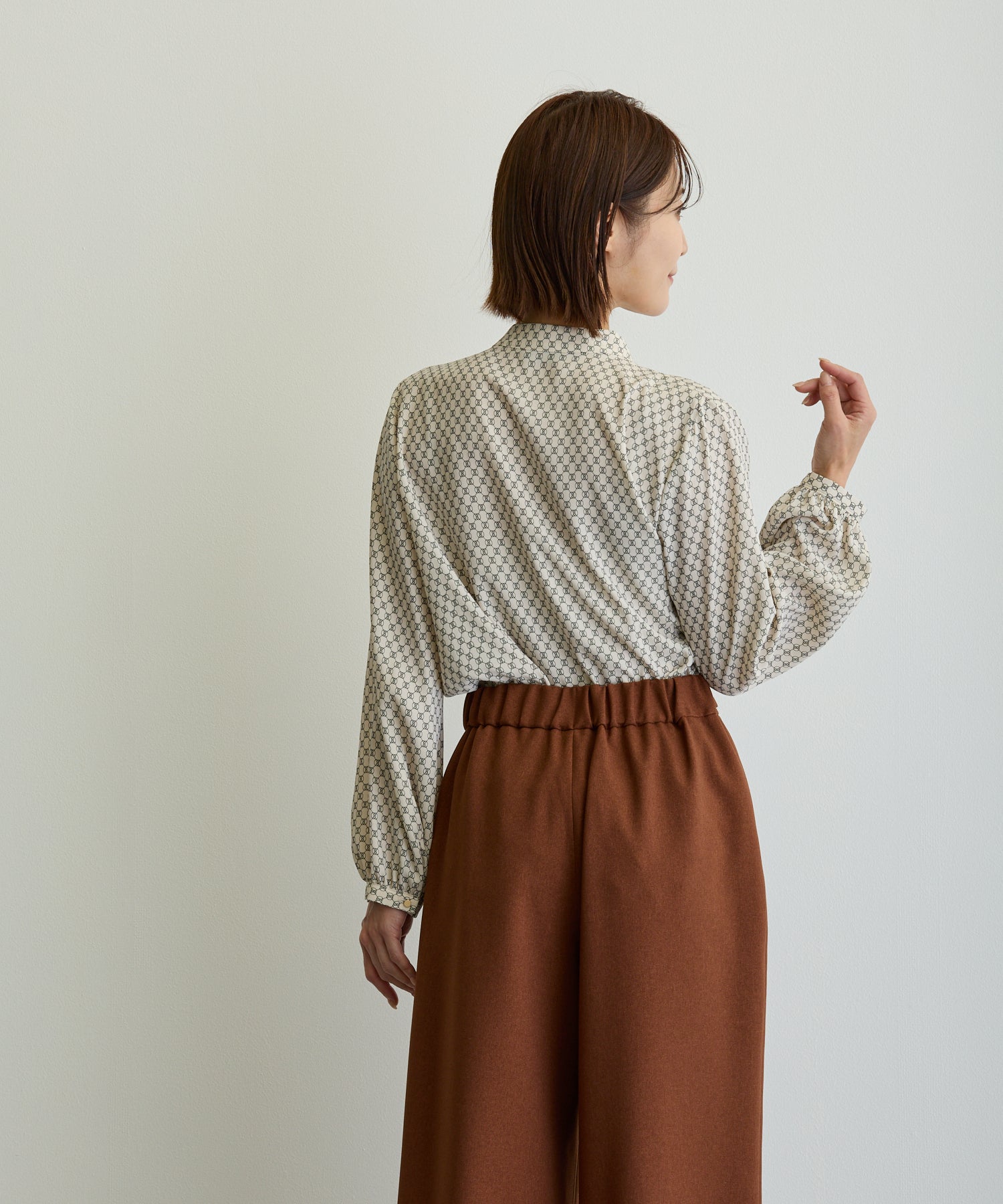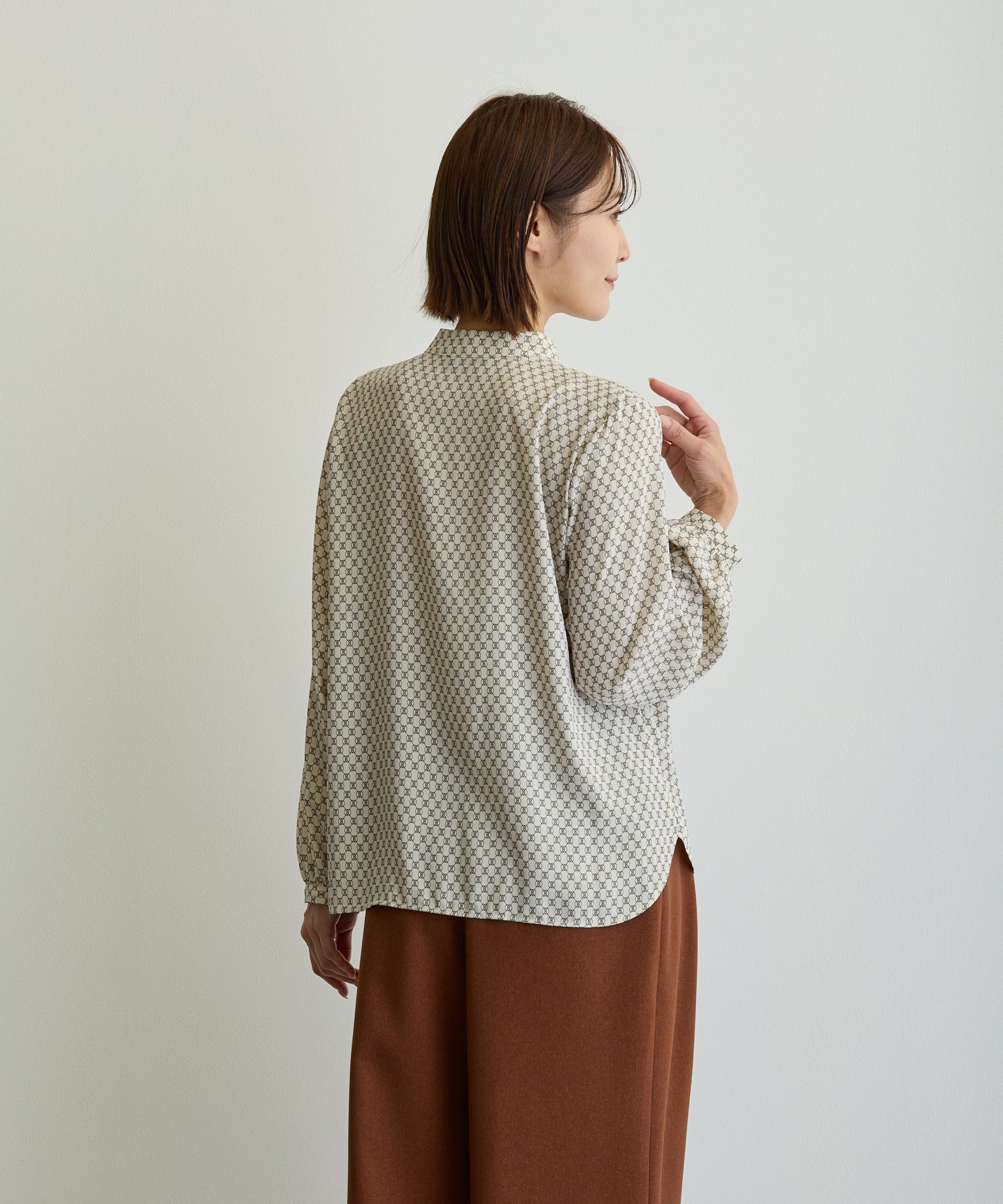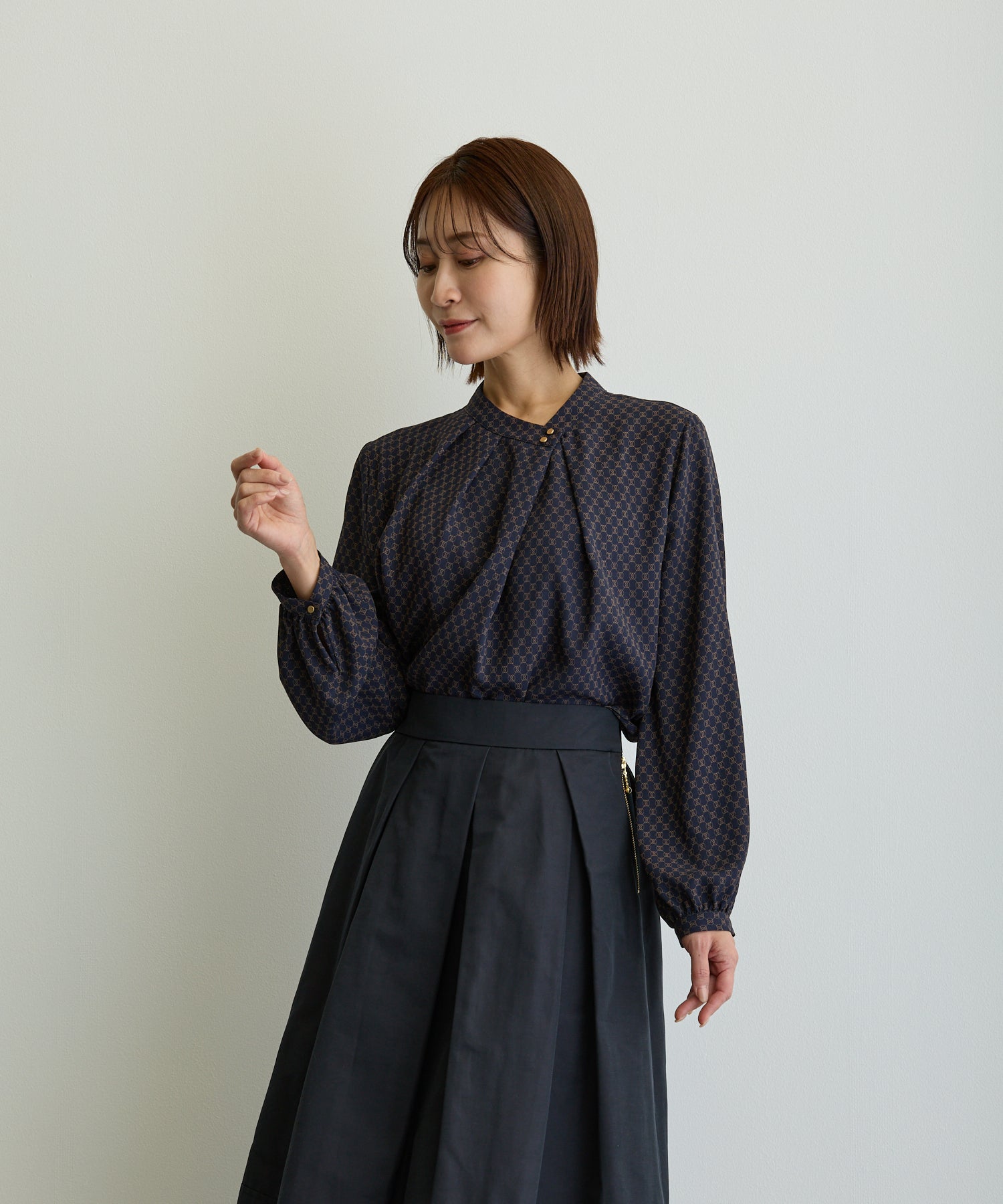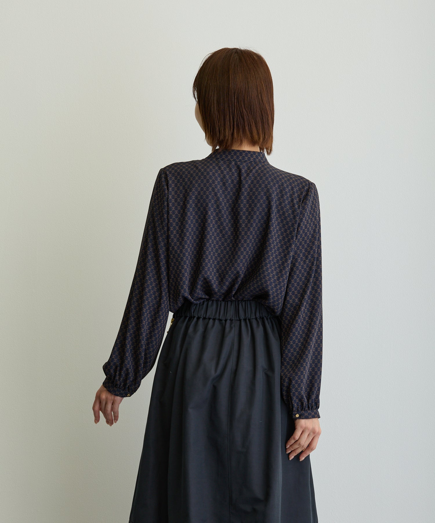 幾何柄プリントサイドスカーフアシメタックブラウス【日本製】