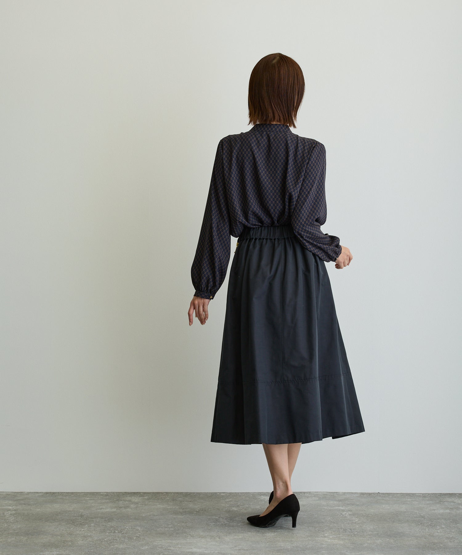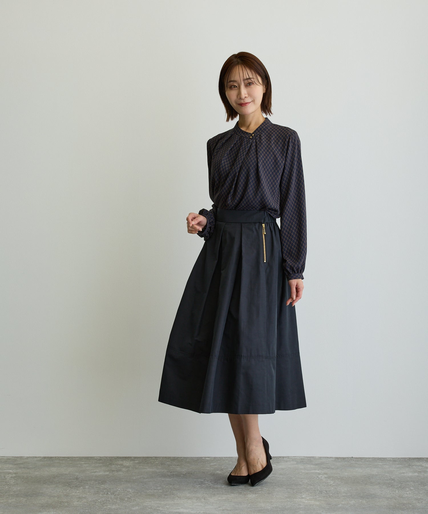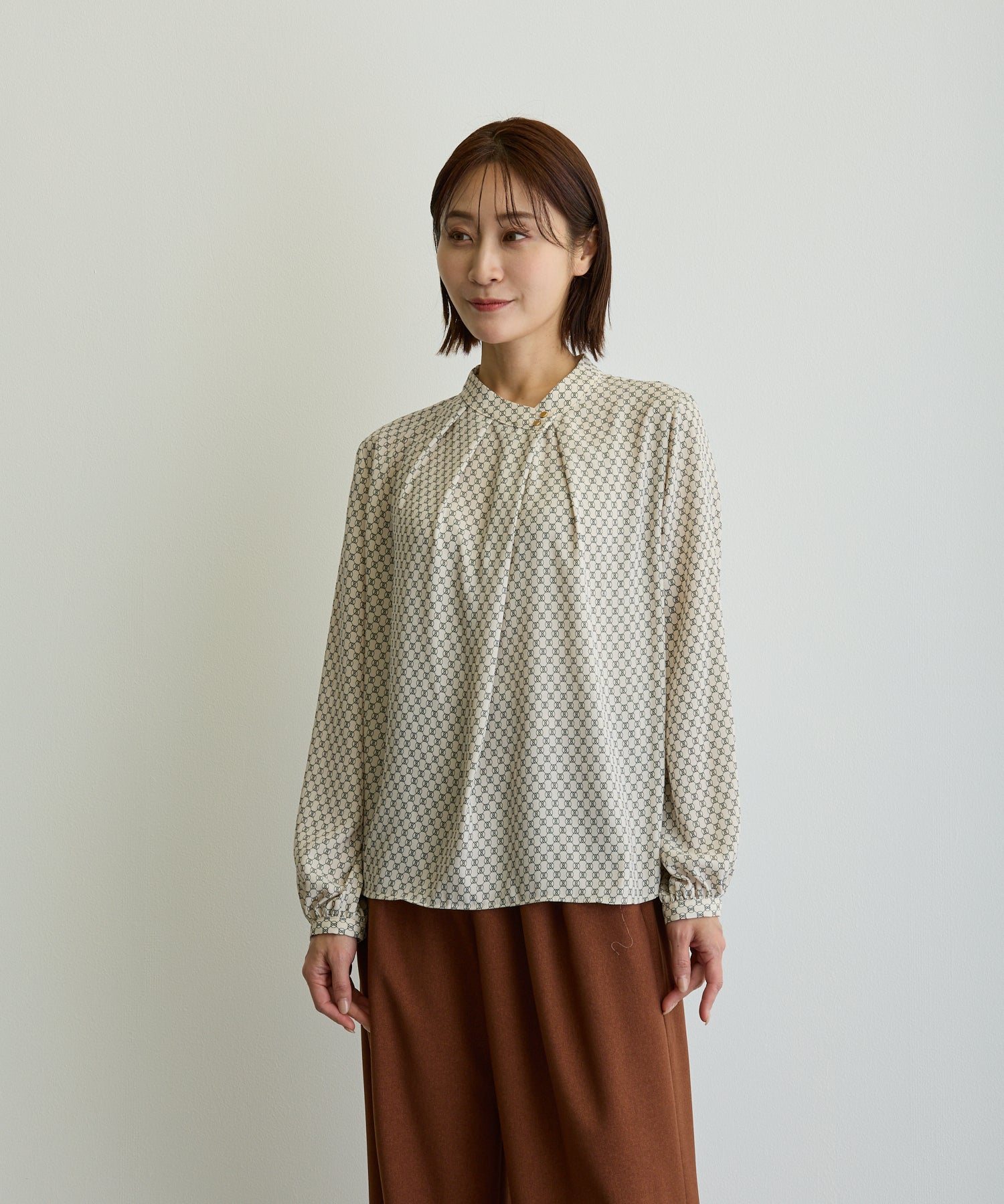 幾何柄プリントサイドスカーフアシメタックブラウス【日本製】