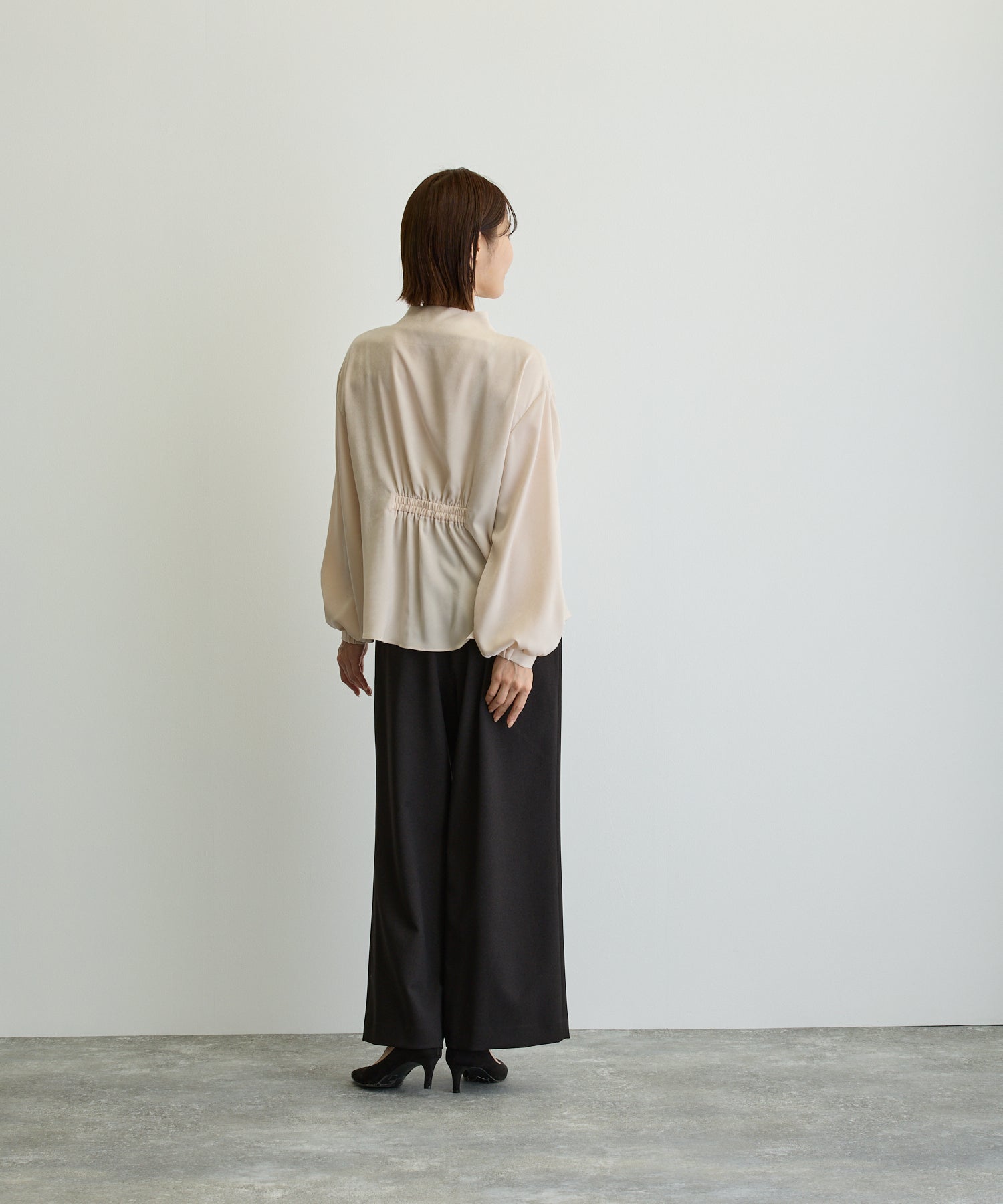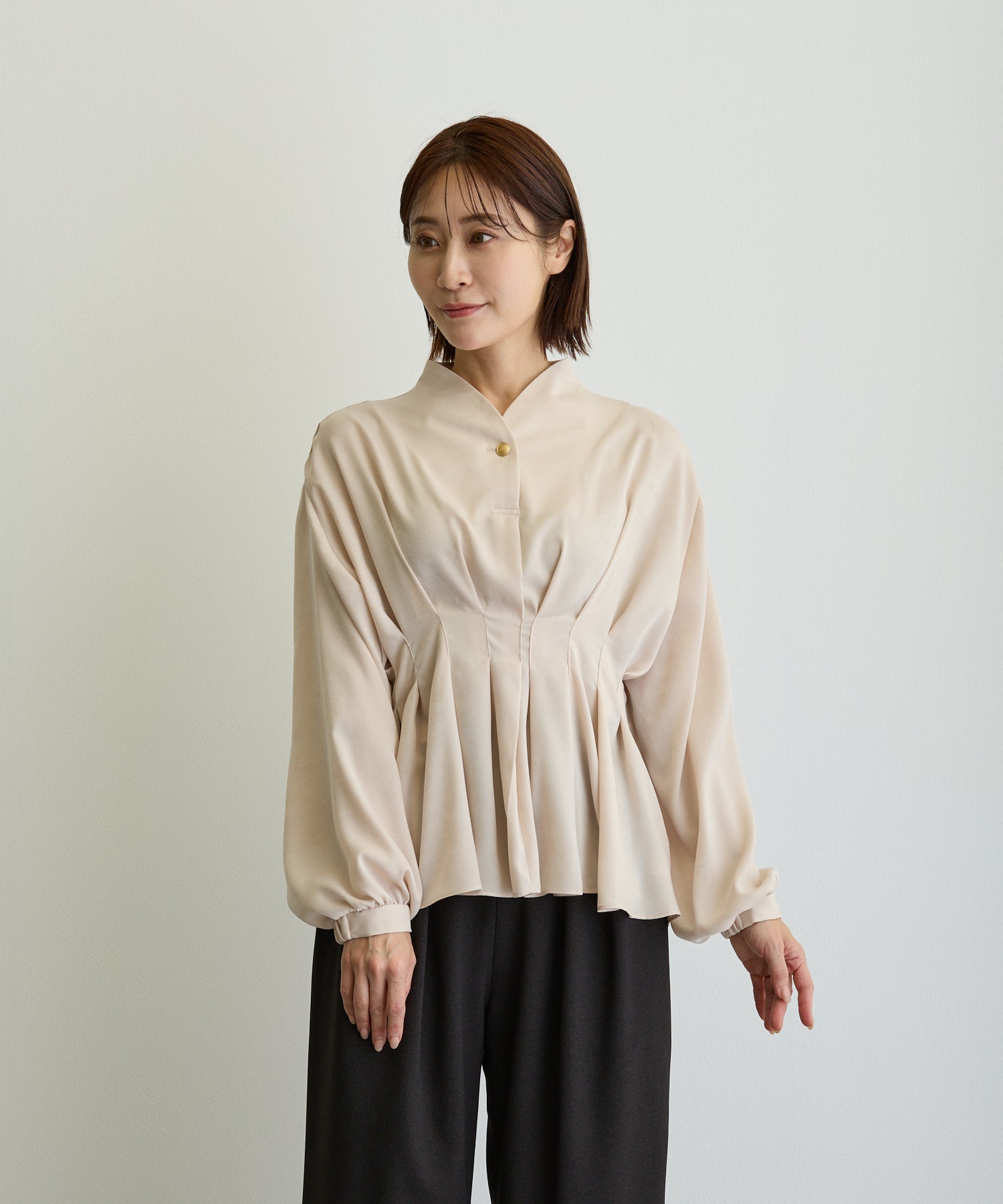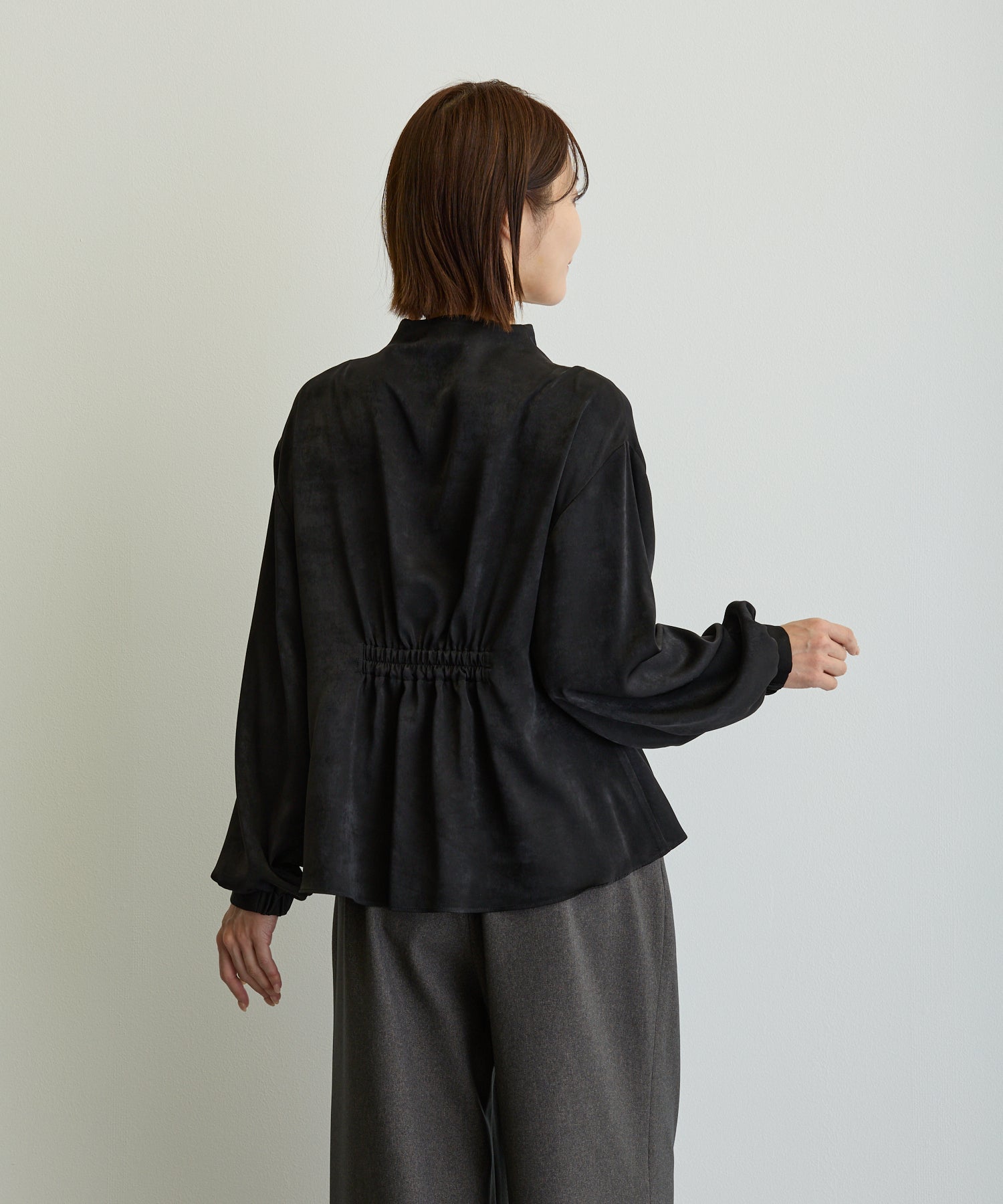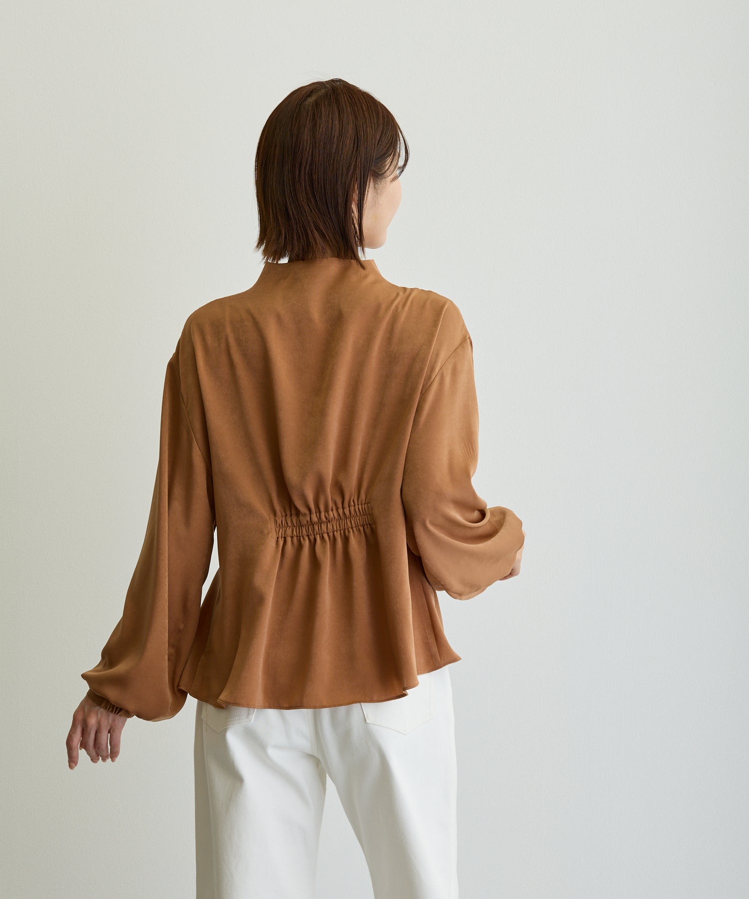 幾何柄プリントサイドスカーフアシメタックブラウス【日本製】