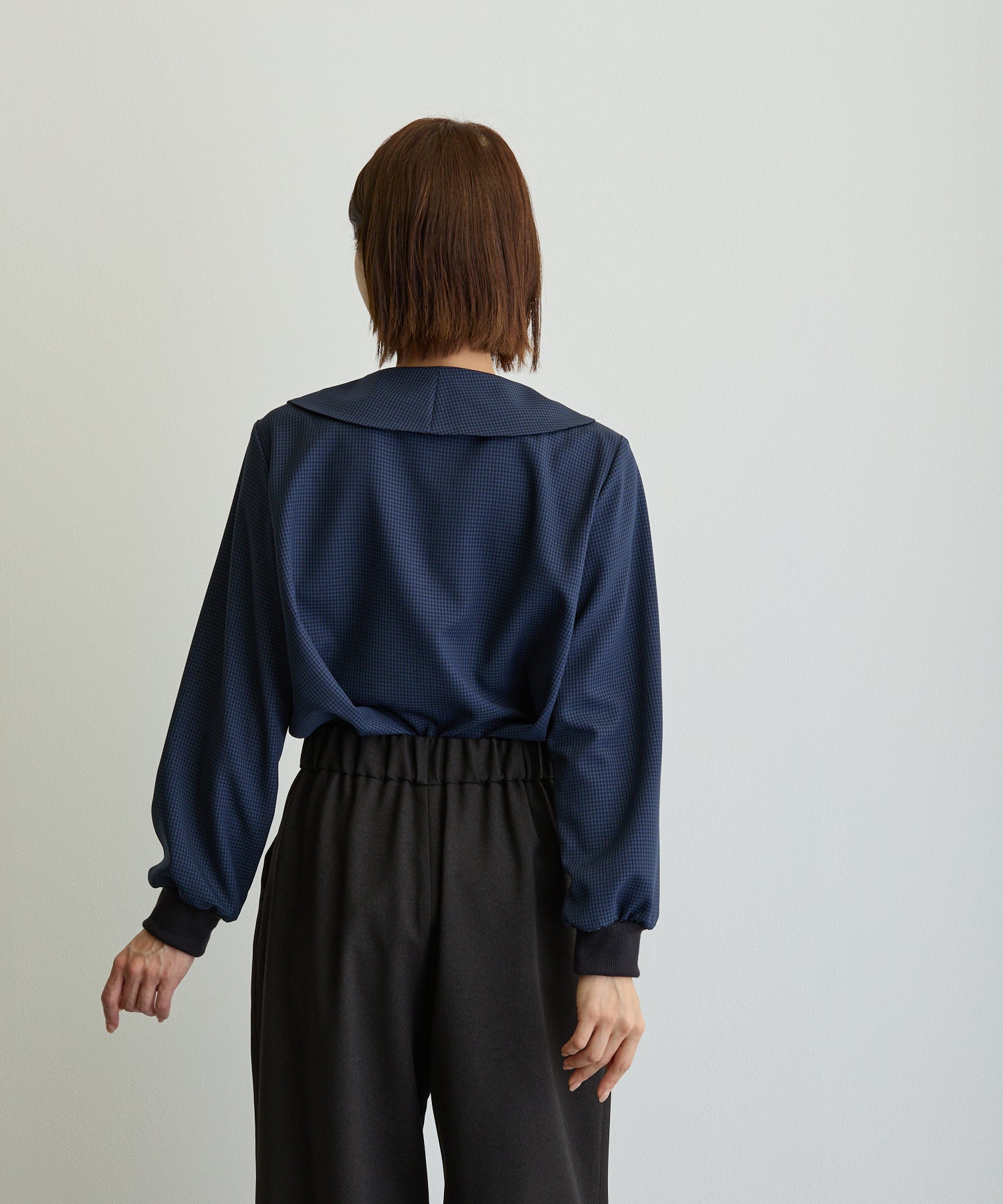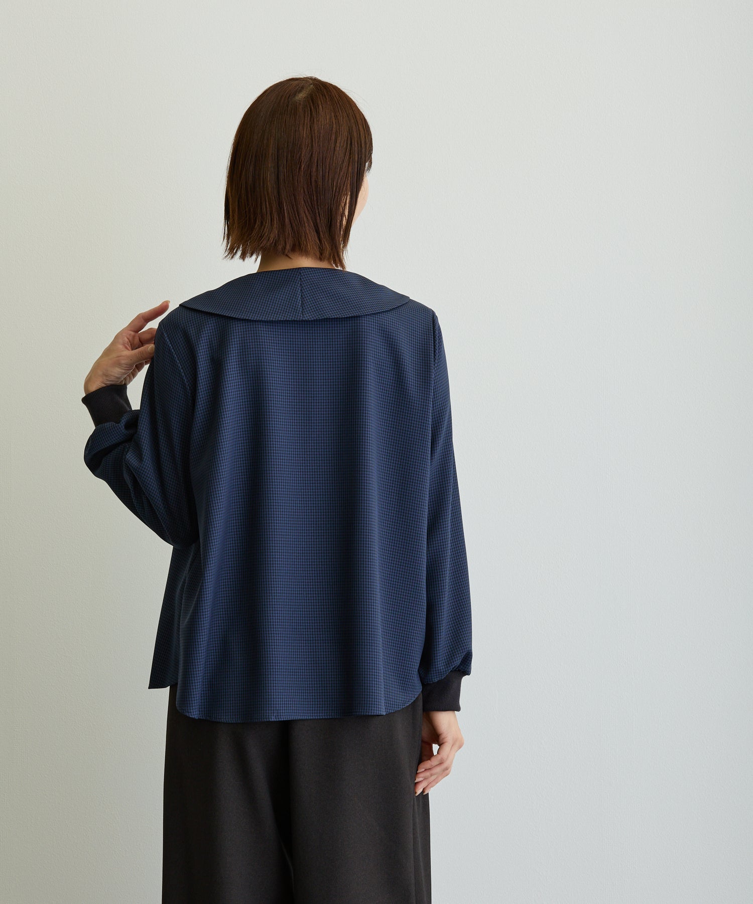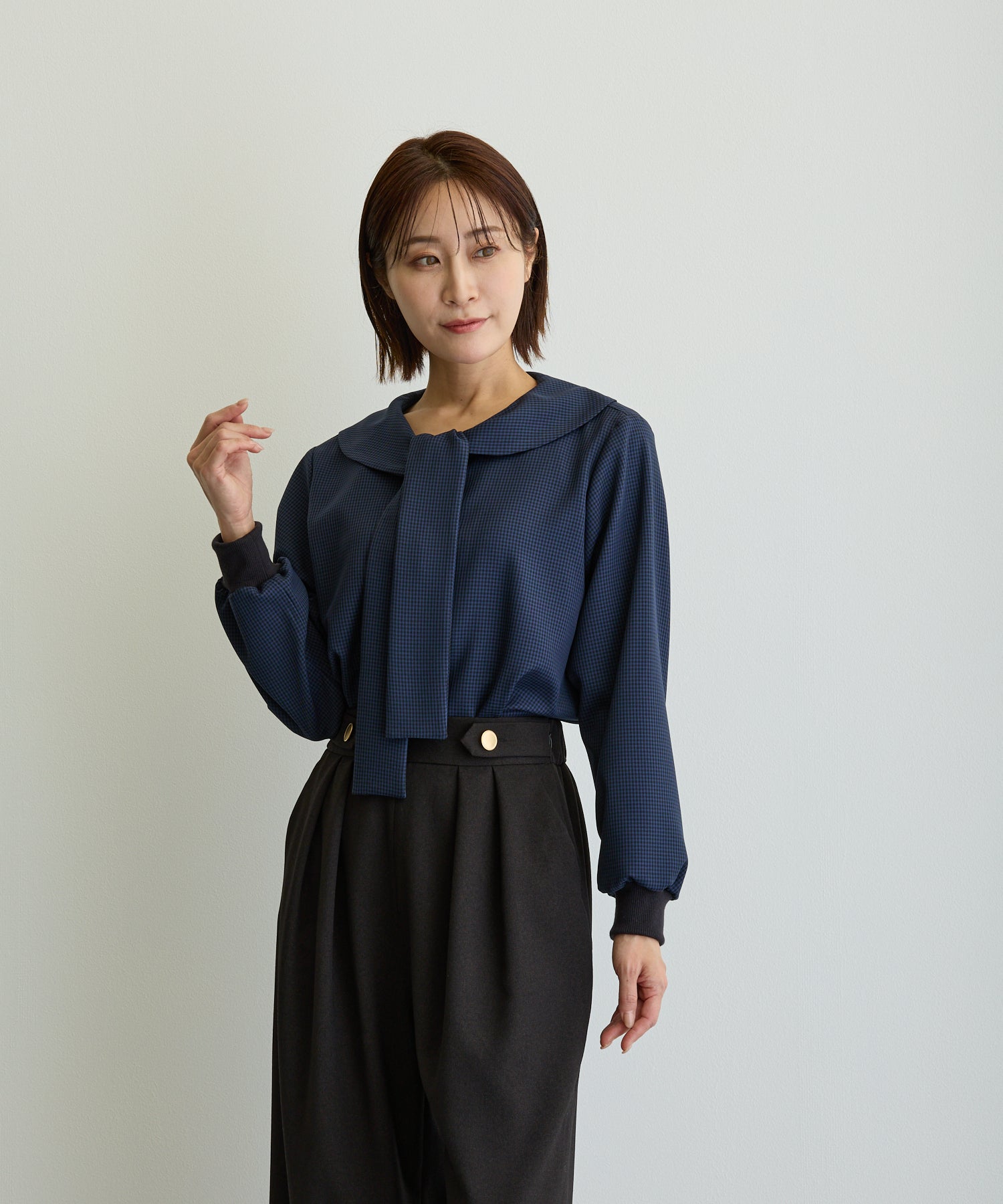ガンクラブチェックボウタイブラウス/ネイビー【日本製】