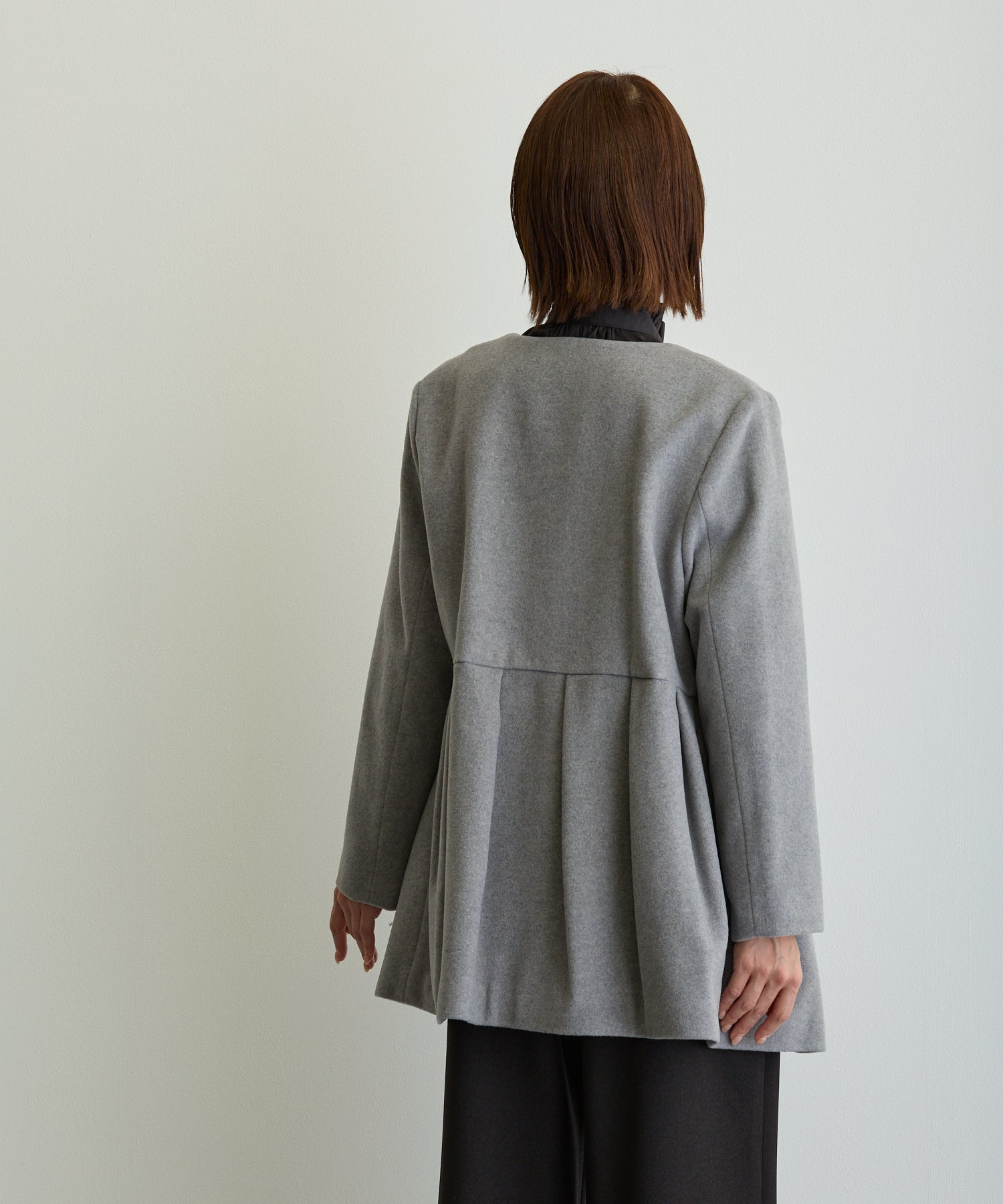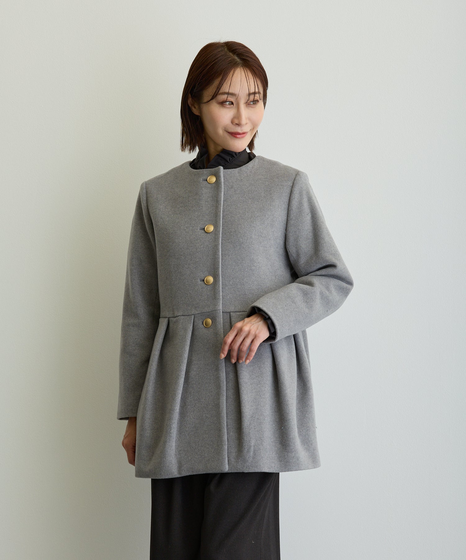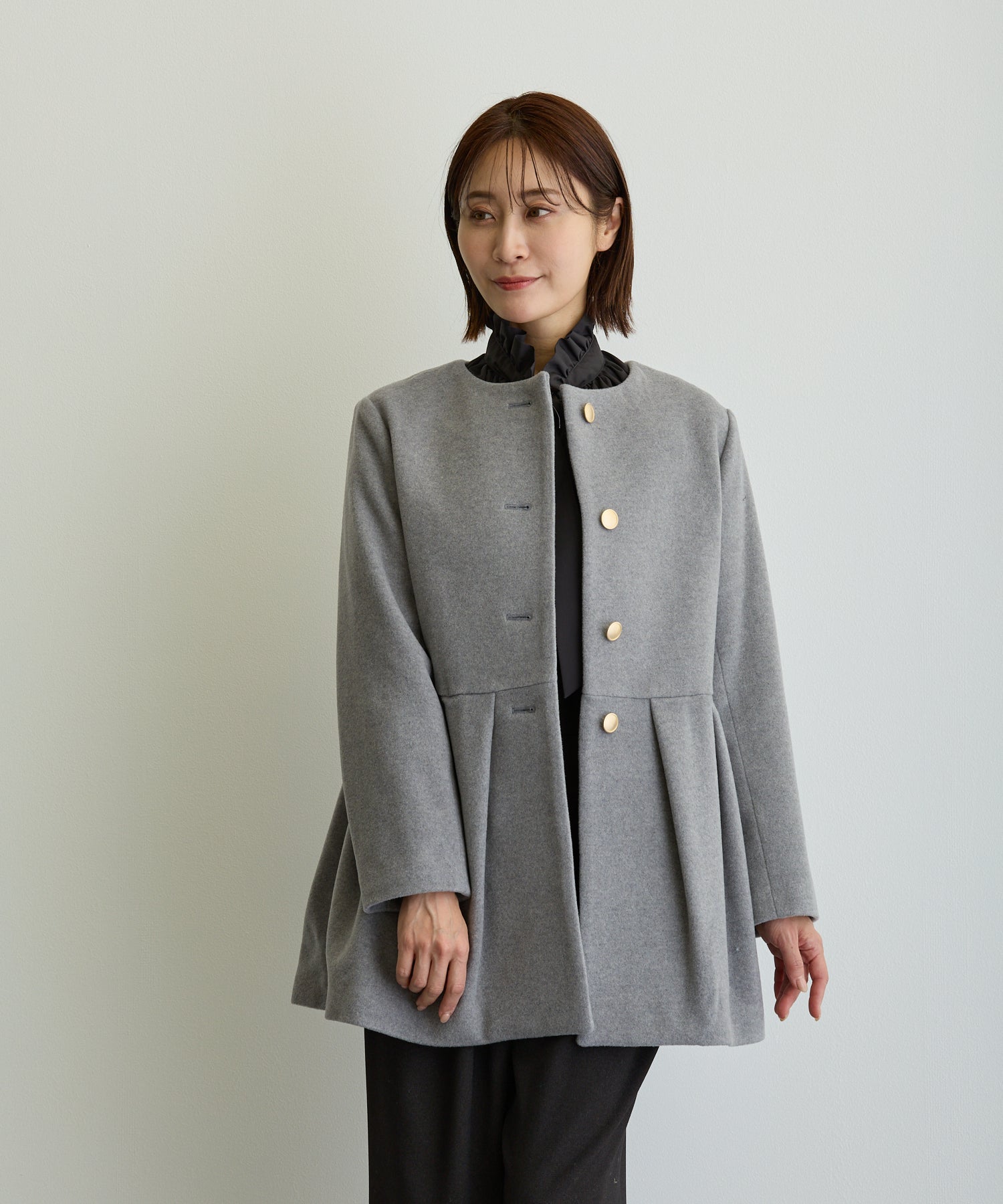 ペプラムノーカラーコート/トップグレー【日本製】