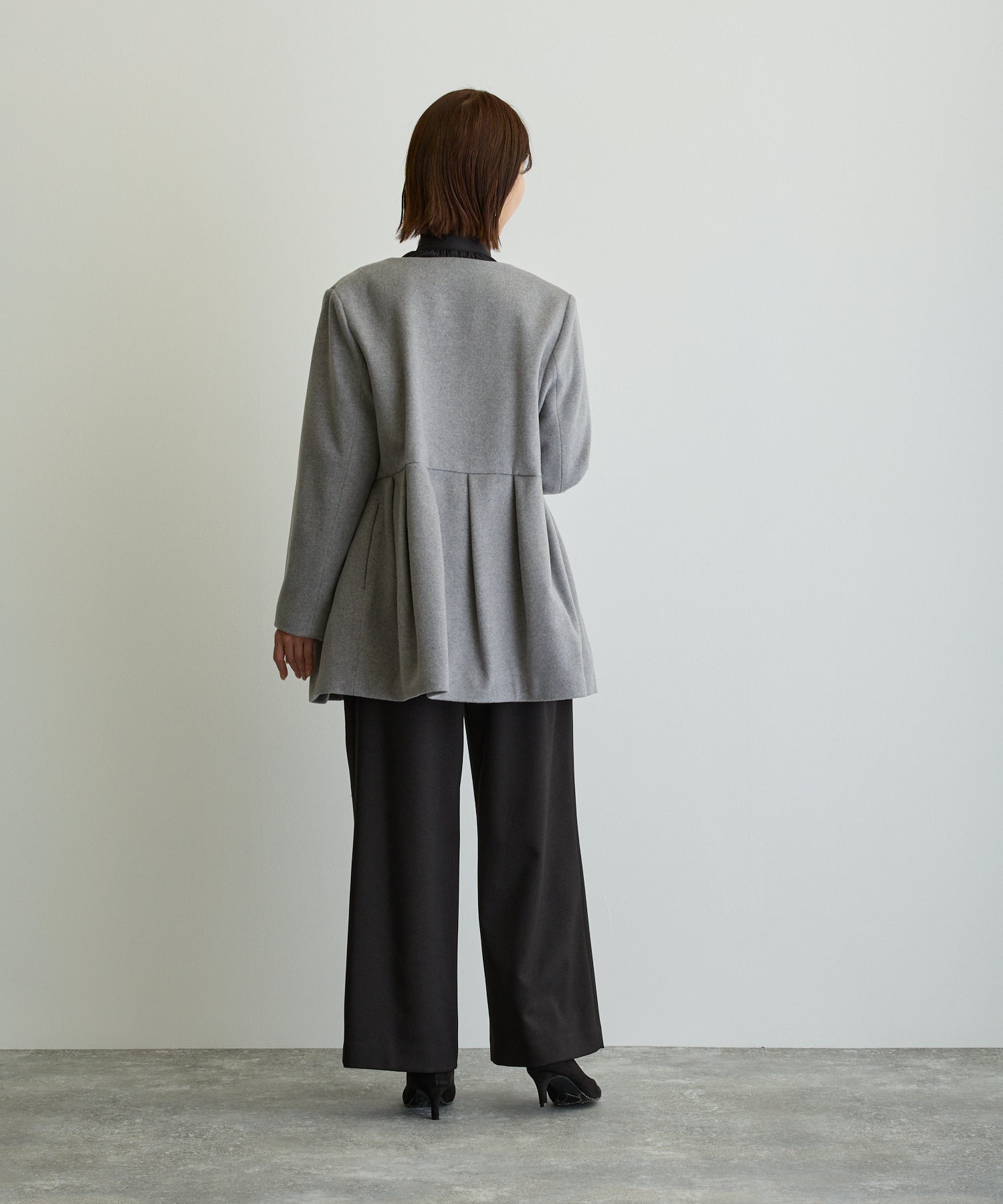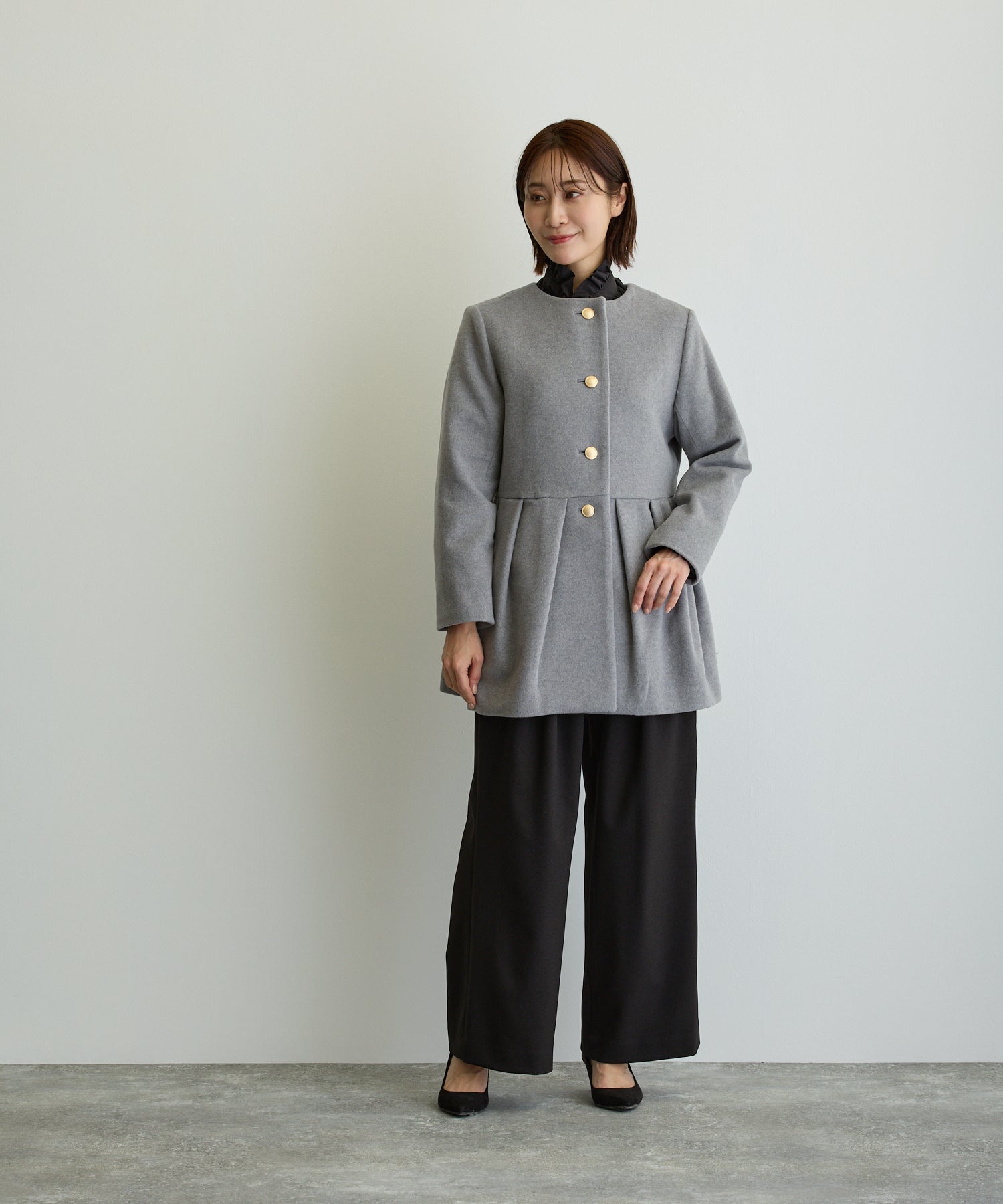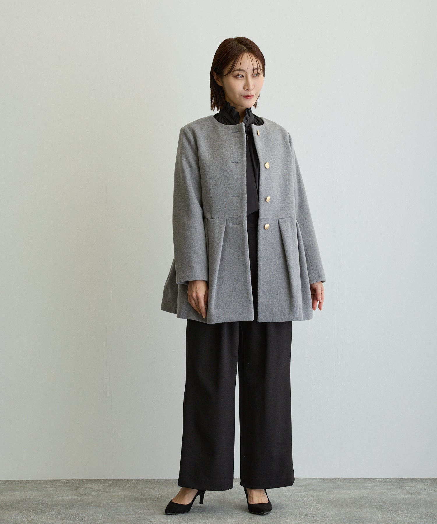 ペプラムノーカラーコート/トップグレー【日本製】