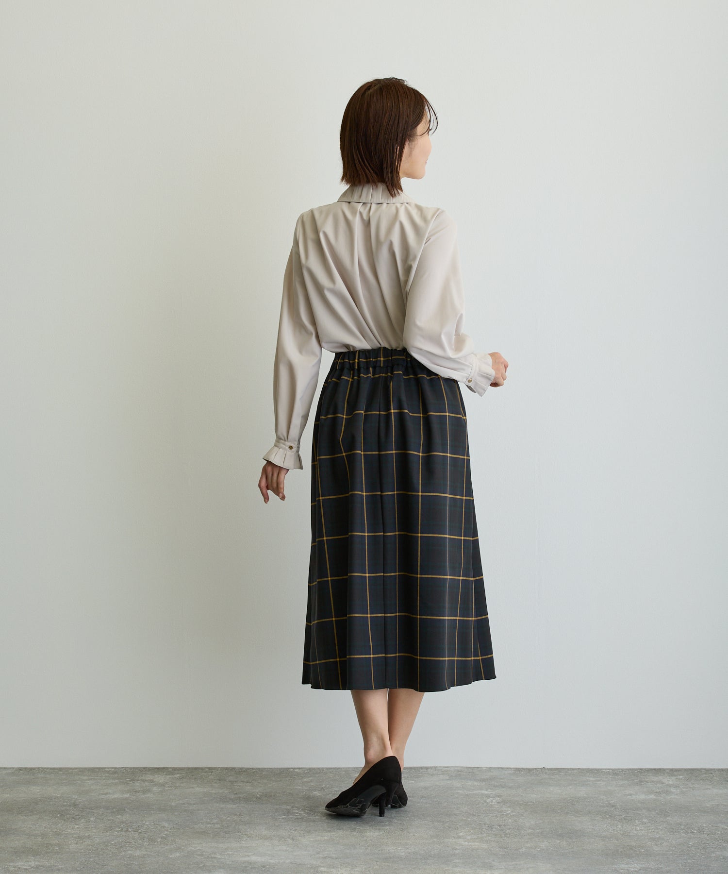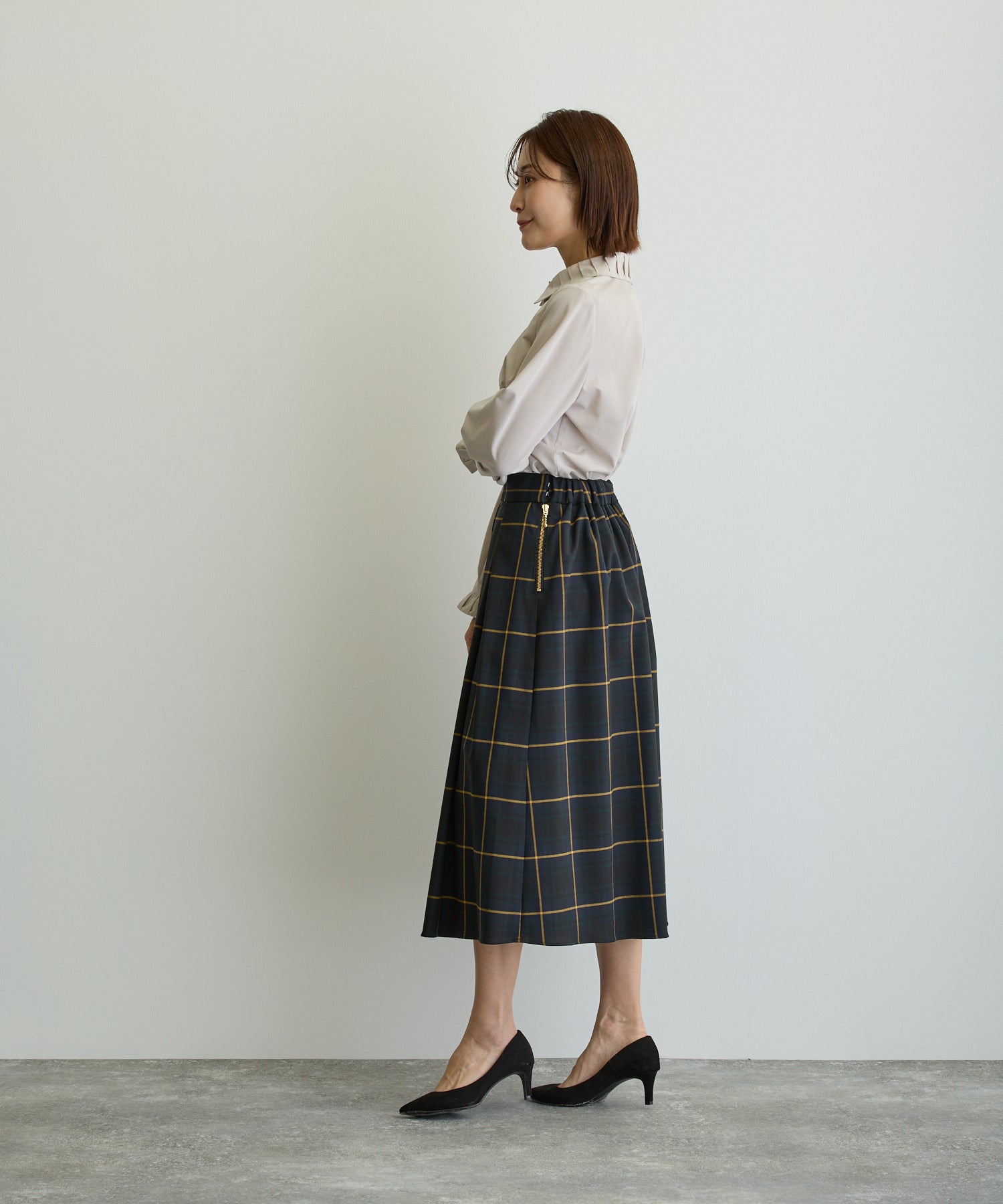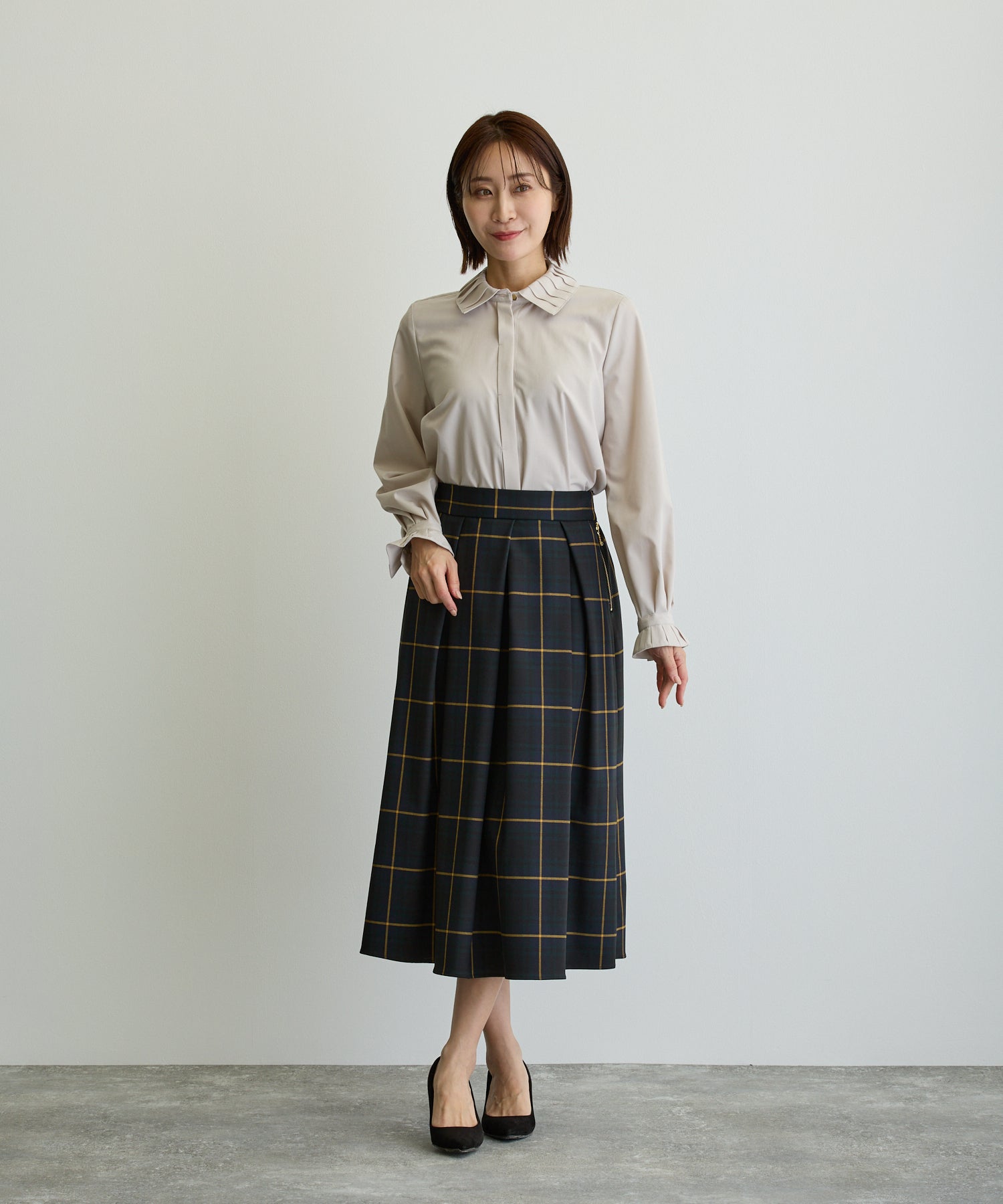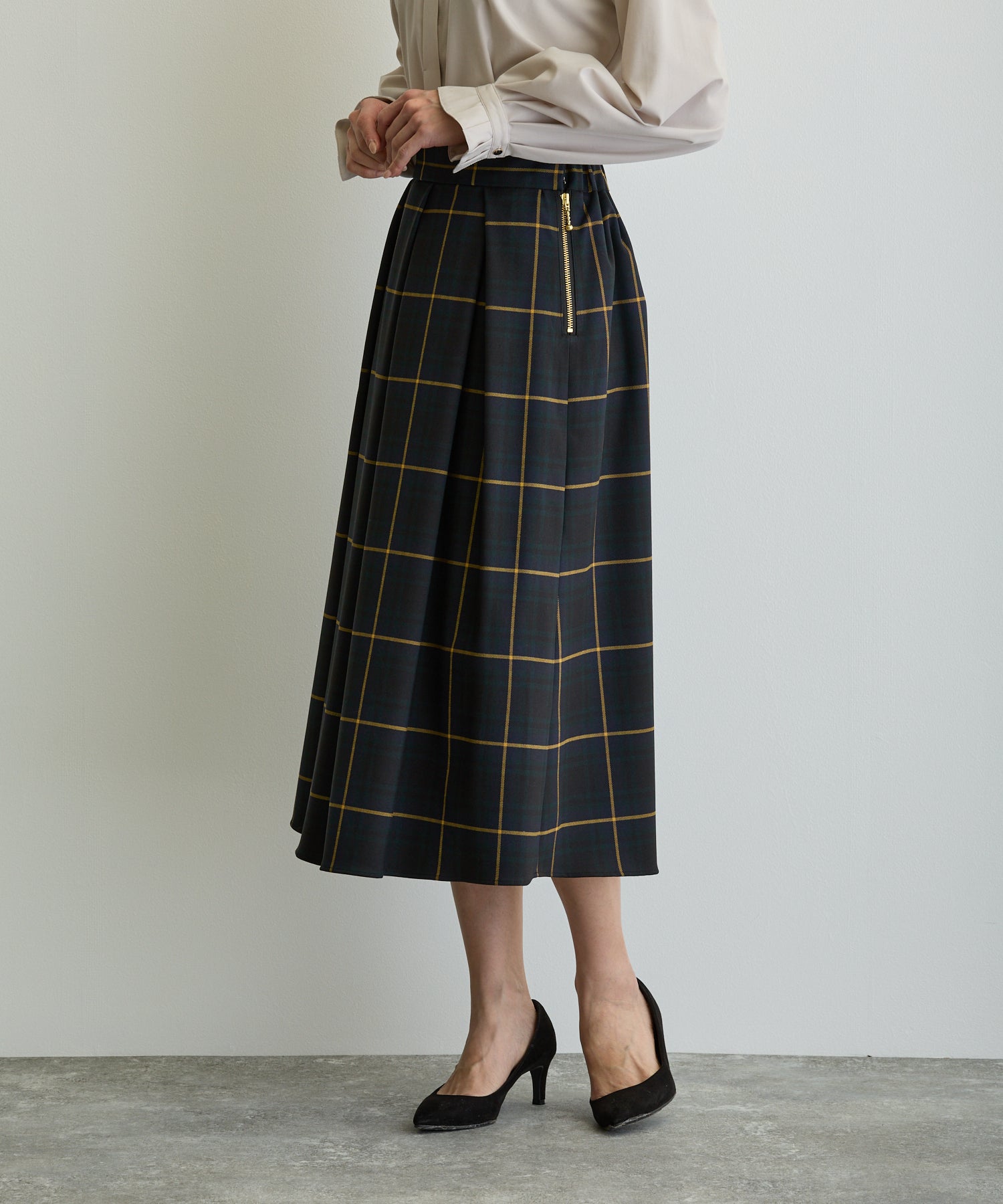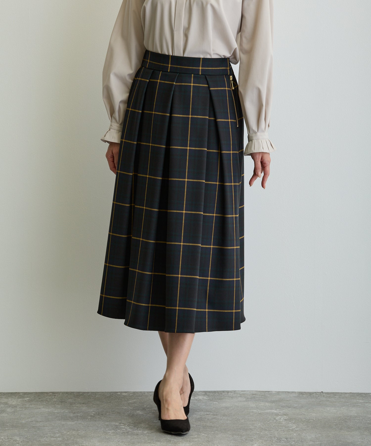 タックフレアチェックスカート/ブラックウォッチ×イエローライン【日本製】