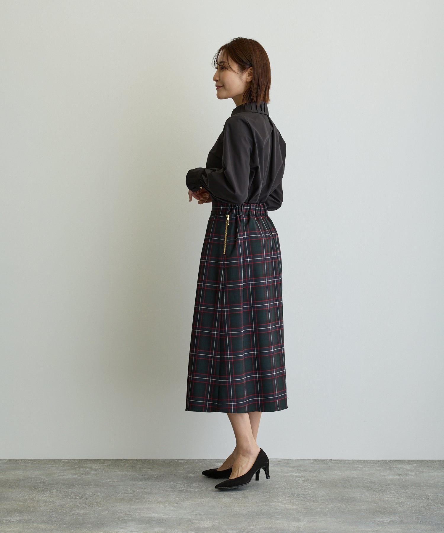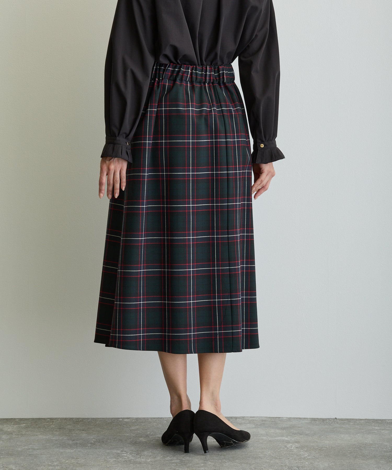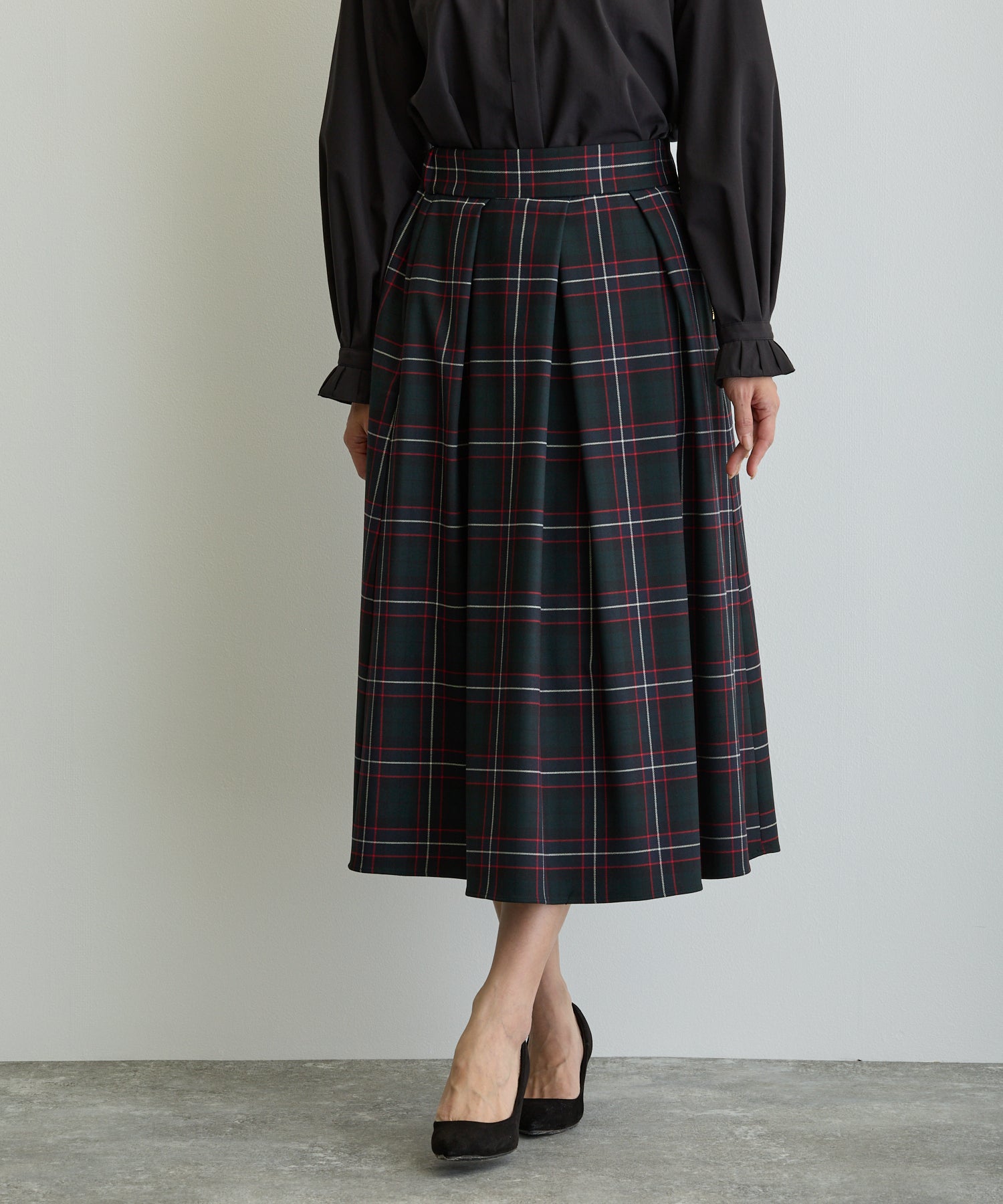 タックフレアチェックスカート/ブラックウォッチ×レッドライン【日本製】