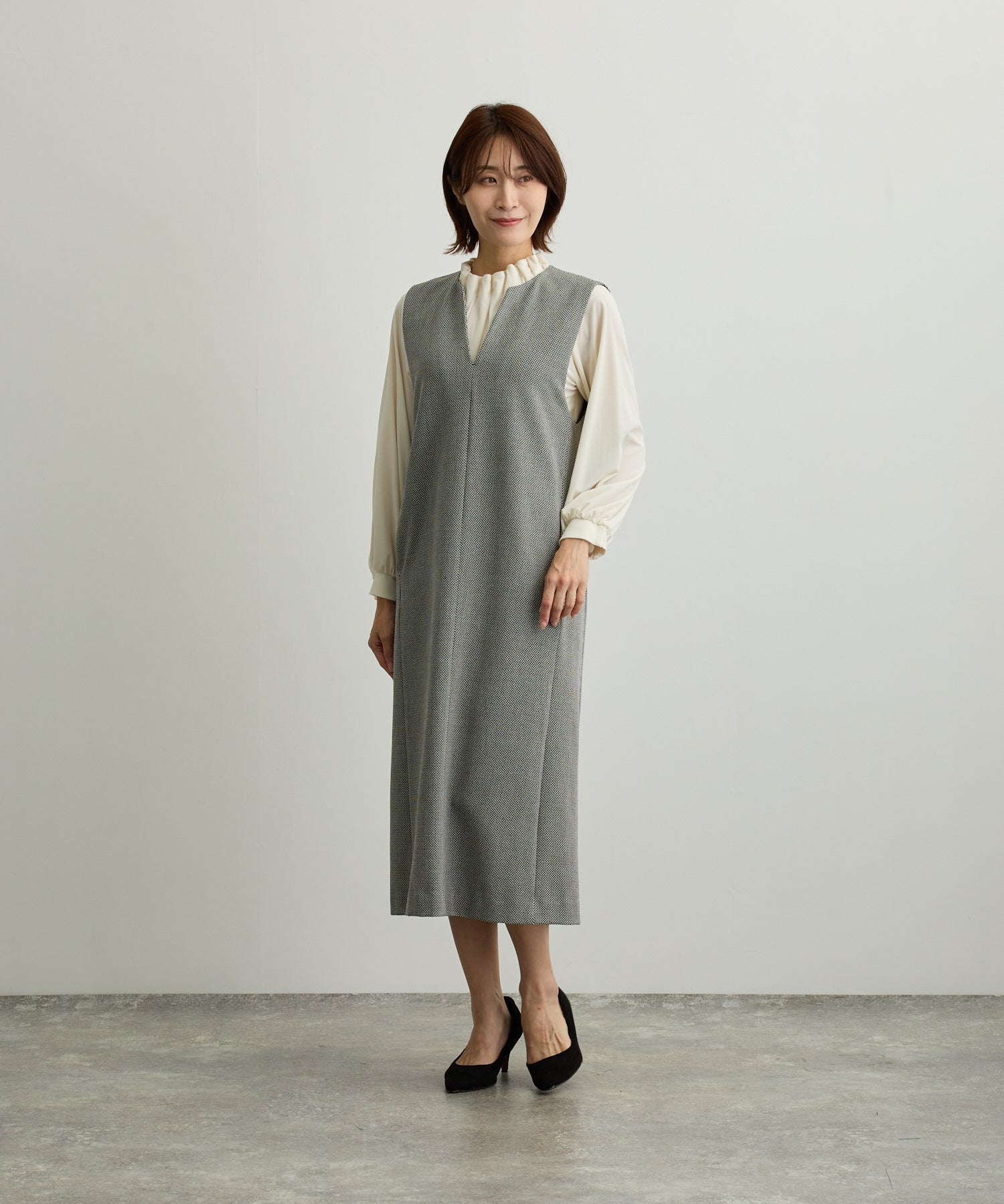 ウエストスピンドルゴムギャザーワンピース【日本製】